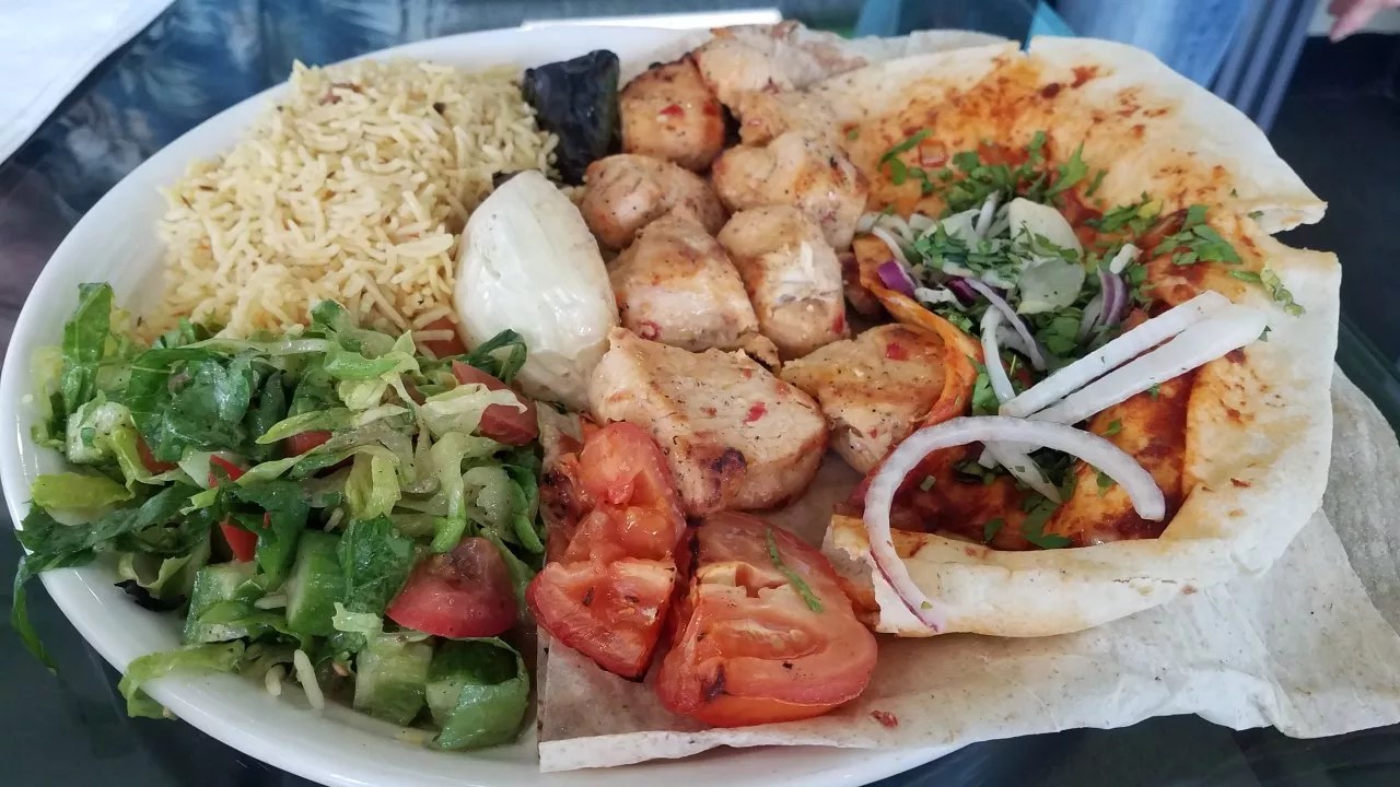 We also had the tender chicken shish kabob served over a nearly paper-thin pita bread that soaked up the sauce for a nice touch (see photo at top).