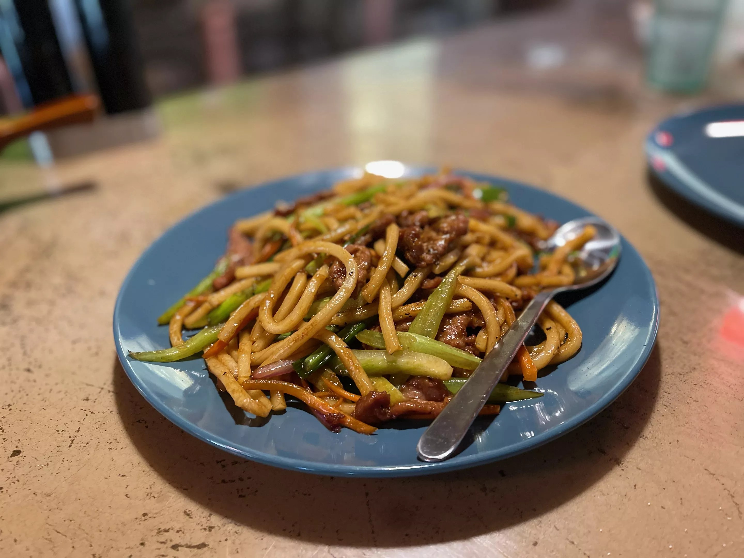 If you are going to venture away from dim sum into the entrees, the beef pan-fried udon is amazing. The tender beef melts in your mouth. The pan-fried udon noodles are coated in a delicious sauce and loaded with veggies.