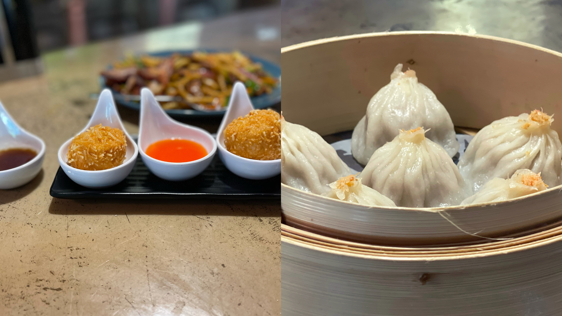 Crispy shrimp balls (left) and crab meat soup dumplings
