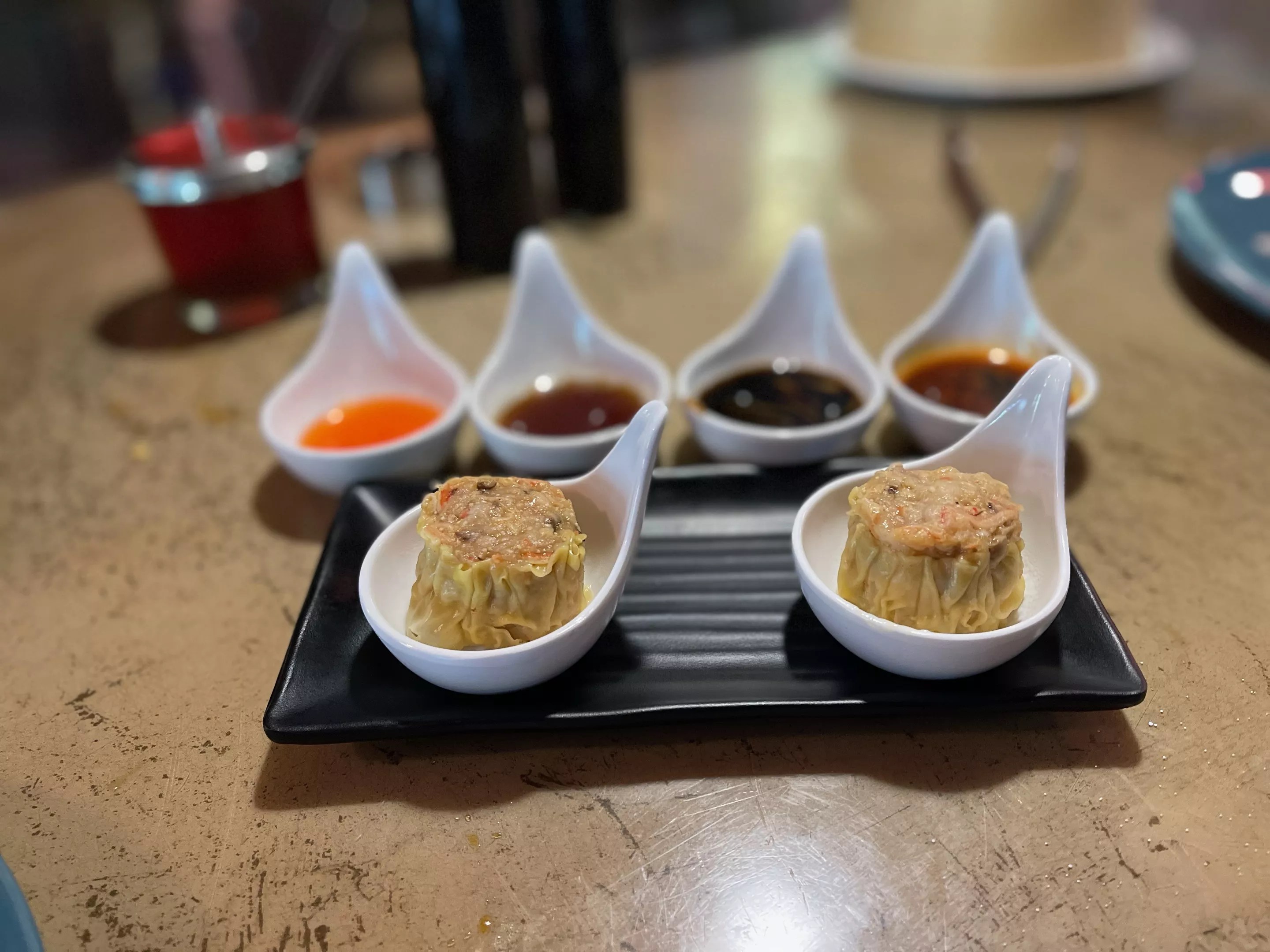The hot and sour soup had just the right amount of kick without the need to add hot chili oil or any other spices to it. There are six soup dumplings with crab meat per order. They were juicy and fresh, and you could certainly taste the succulent sweet crabmeat in them. Seafood shumai has two per order and are packed with flavor seafood, especially with some chili oil and soy sauce dolloped on top. Crispy shrimp balls also has two per order and come with a sweet and sour sauce. Char siu is sliced Chinese barbecue pork served with a hoisin, honey, soy sauce combo for dipping.