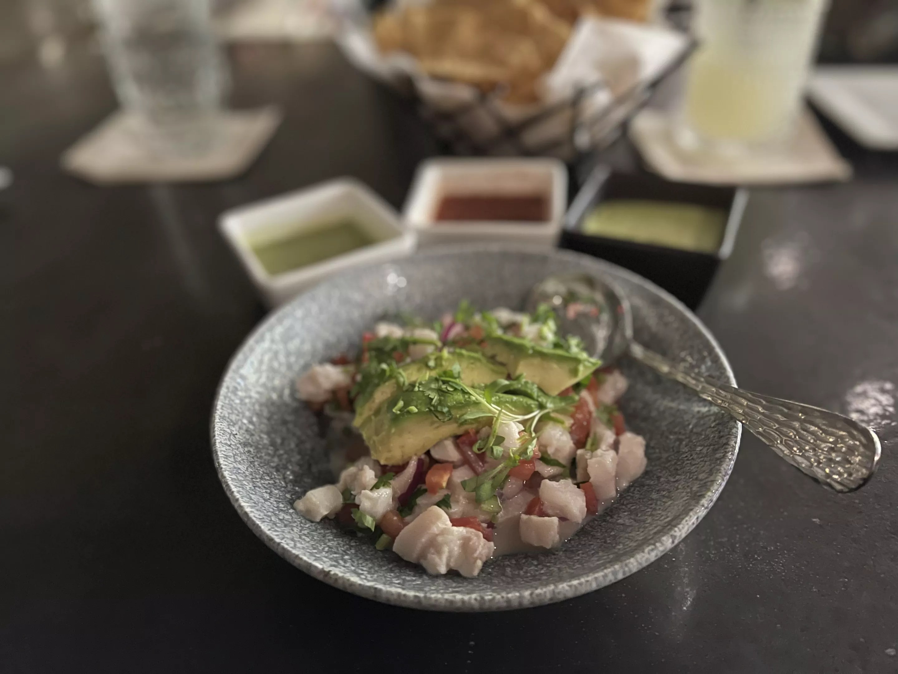 For dinner, we started with the ceviche ($13) made with citrus-marinated snapper, tomato relish and avocado. Their salsa Guerro is a thick green salsa, and if you prefer more heat than what they serve with their complimentary chips, you should ask for a side of it. It gave the ceviche enough of a kick without compromising the flavors of the dish.