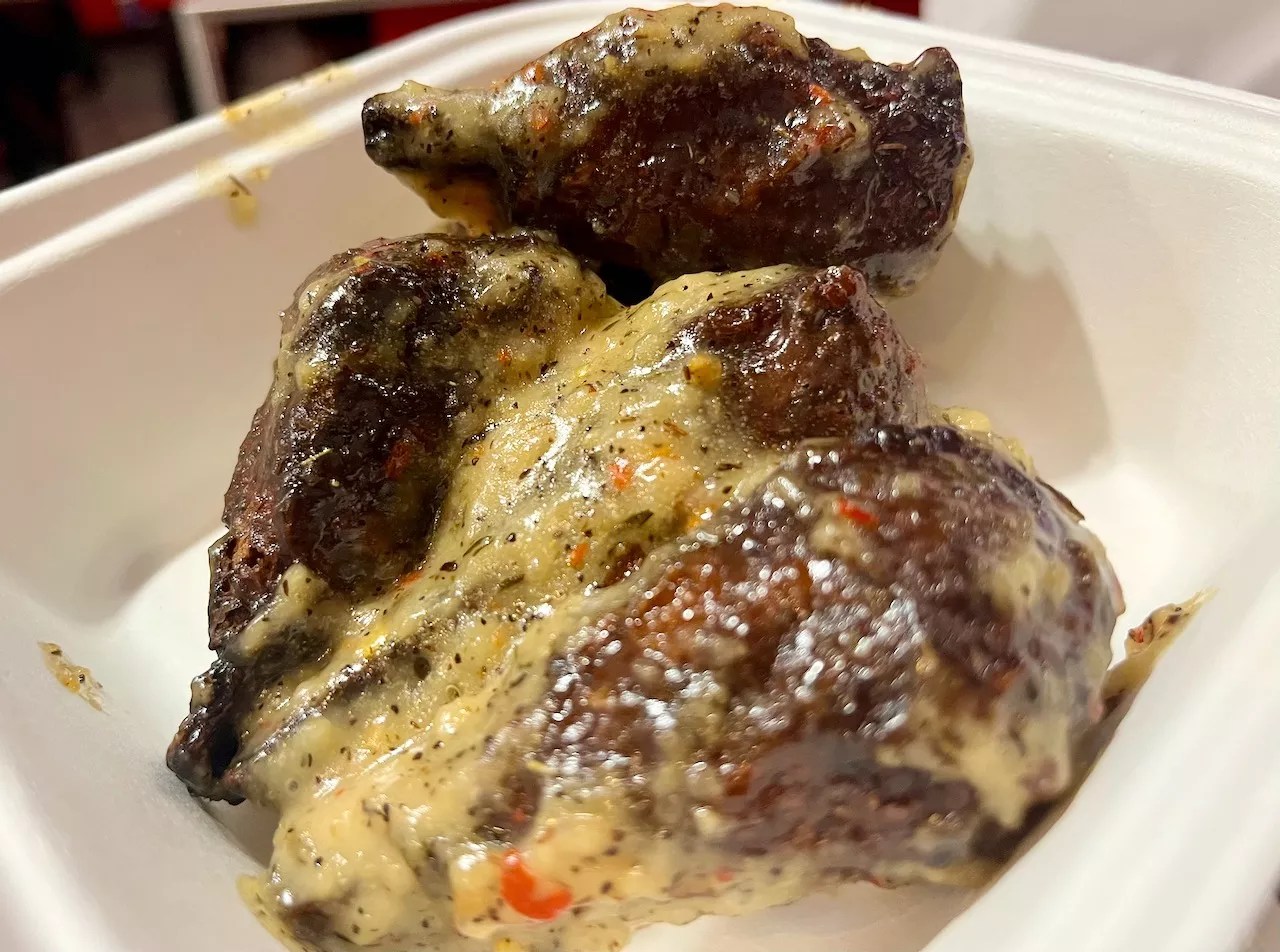 As equally deceiving are their Chikn wings (five for $8.50) that come with a wide variety of flavors ranging from Buffalo to garlic and herb. The wing-shaped hunks of Chikn are deep-fried then glazed with butter and spices. These have a slightly burnt flavor and a plant-based “bone” that falls off to the touch. Project Pollo’s Chikn wings capture both the flavors and textures of the real deal.