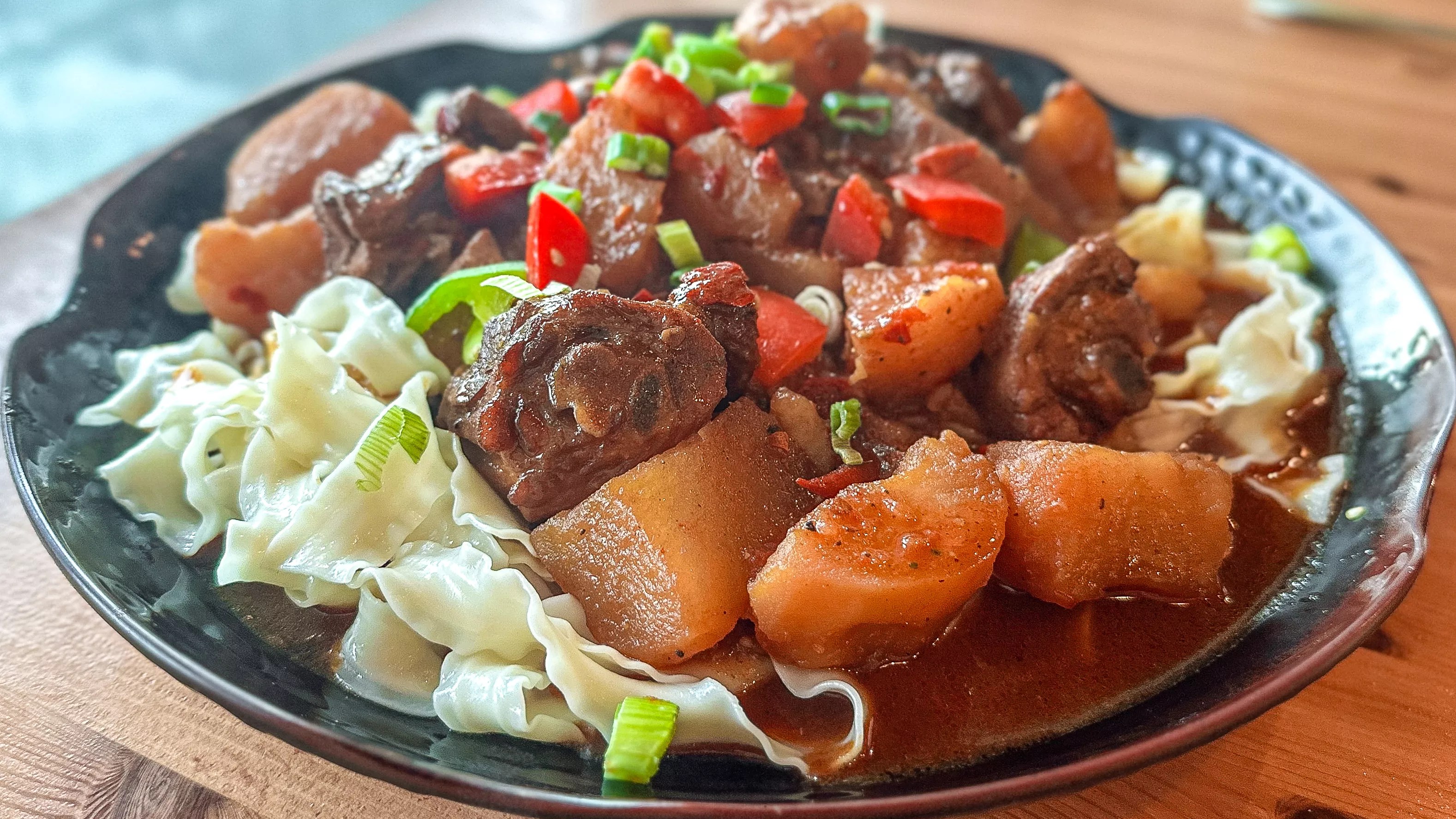 For mains, we wanted to try the Laghman, which is perhaps the signature dish of Uyghur cooking. It’s on the menu (it would have to be), but it is one of the items that is currently not available. We were told that it is a bit complicated to create (one of the components is hand-pulled noodles made per order) and time-consuming, so instead we went with korma chop and the big plate chicken. Korma chop Hank Vaughn