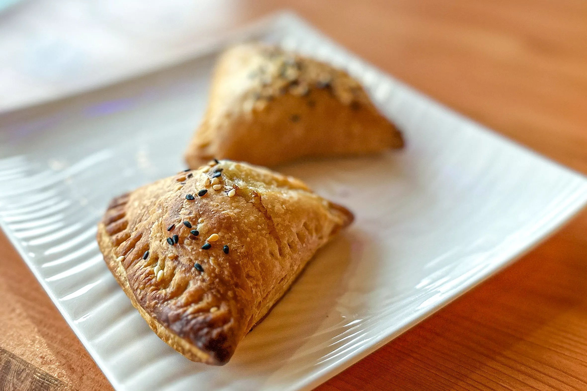 For the starter, we ordered some samsa, which are similar to samosas but oven-baked. They’re stuffed with marinated minced lamb, beef and onions, and are well-seasoned with cumin and white and black pepper. They come two to an order, each about two bites worth, and are brushed with oil and sprinkled with sesame seeds. They were more reminiscent in flavor and texture of pasties rather than samosas. Samsa are little baked meat pies. Hank Vaughn