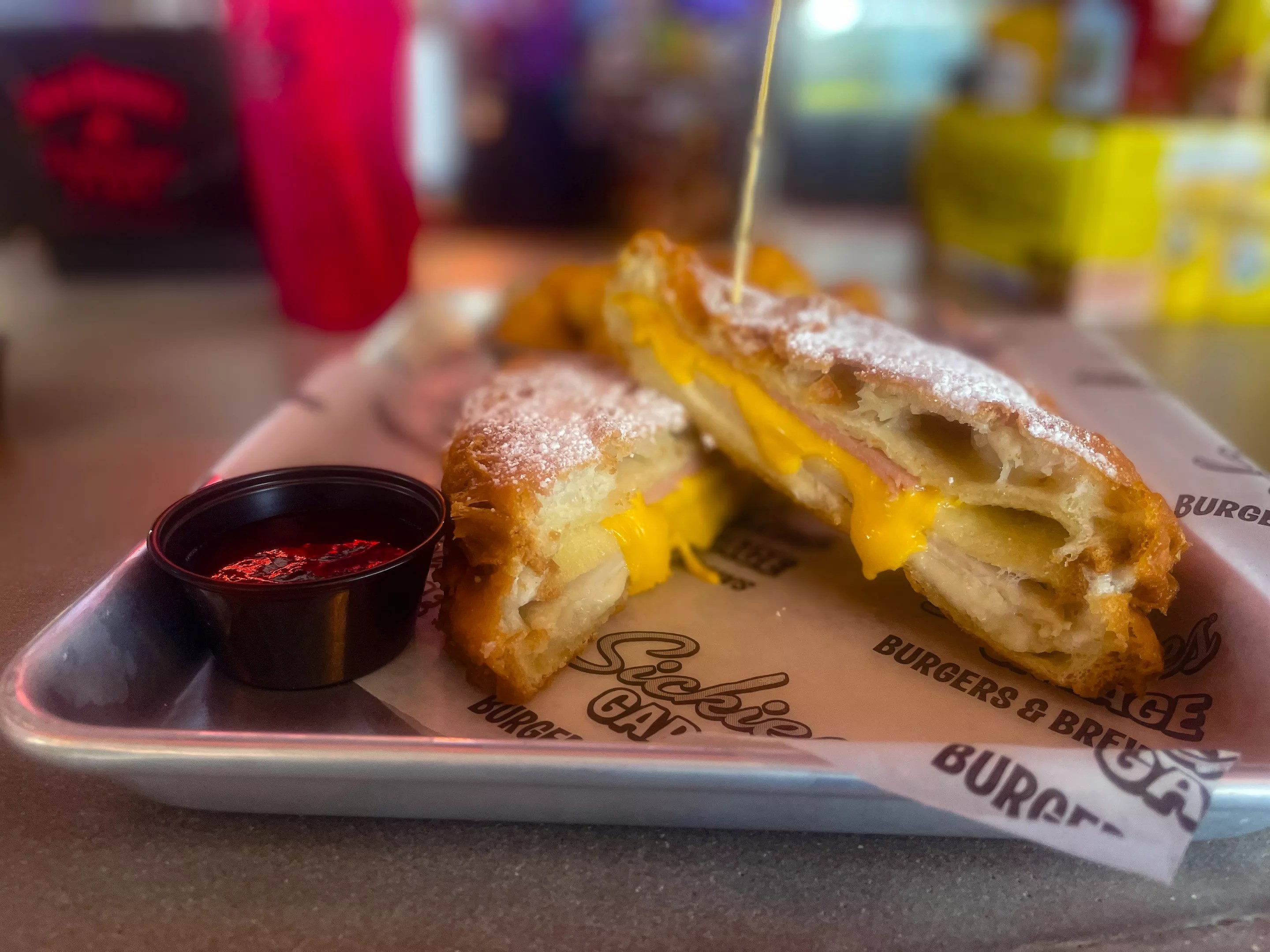 A friend of ours posted on social media recently asking if there were any places in the D/FW area that served an authentic Monte Cristo sandwich (Bennigan’s style). When we saw that Sickie’s Garage had one on the menu, we knew we had to order it. The bread is layered with ham, roasted turkey, Swiss and American cheese and mayo. It’s then batter-dipped, gently fried and coated with powdered sugar and served with red raspberry preserves. It was as good as we remember from the good old days of Bennigan’s: crispy on the outside, savory on the inside and sweet with the raspberry preserves. We do wish they would have added more meat to the sandwich (and perhaps we could order extra meat on a future visit), but otherwise it was great.
