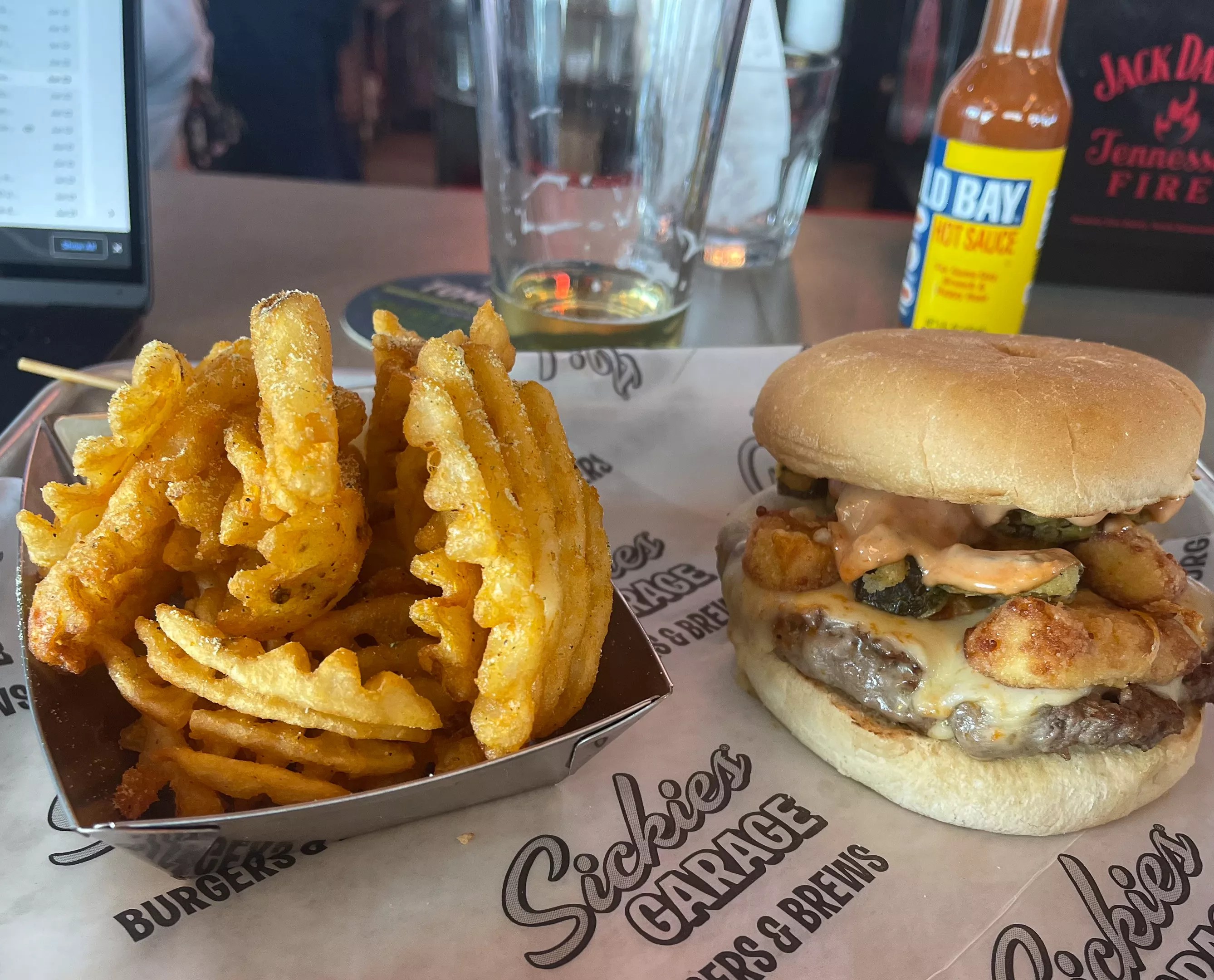 Sickie’s Garage Burgers and Brews 3165 Regent Blvd., Irving. Monday – Friday, 11 a.m. – midnight; Saturday – Sunday, 10 a.m. – midnight.
