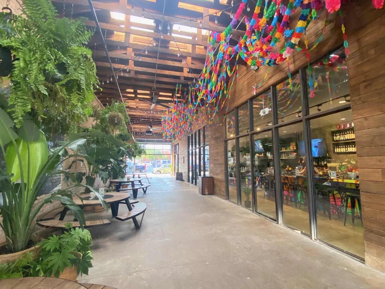 Gino Rojas is expanding his gunslinging taco empire in Deep Ellum. Just around the corner from his original taco Revolver Taco Lounge on Main Street is a new “gastro cantina” serving elevated Mexican dishes. Try the delicate cabrito wontons topped with tiny purple flowers or elotes made with white truffle butter. Pastor tacos sizzle on a trompo, and Rojas’ aunt is still there, pressing out fresh tortillas as orders roll in. The space cuts through a building, so you can enter either through Elm or Main Street. All seating inside is at one long bar. During the day, it’s a great spot to grab an amazing meal. As the day wears on, the music is up and the lights are dimmed. For more on that, check out their giant licuachelas served in blenders. Revolver Taco Lounge Gastro Cantina is open 11 a.m. to 10 p.m. Tuesday – Thursday; 11 a.m. to 12 a.m. Friday and Saturday; 11 a.m. to 8 p.m. Sunday. The exterior looks a bit stark, but inside is another tone. Lauren Drewes Daniels