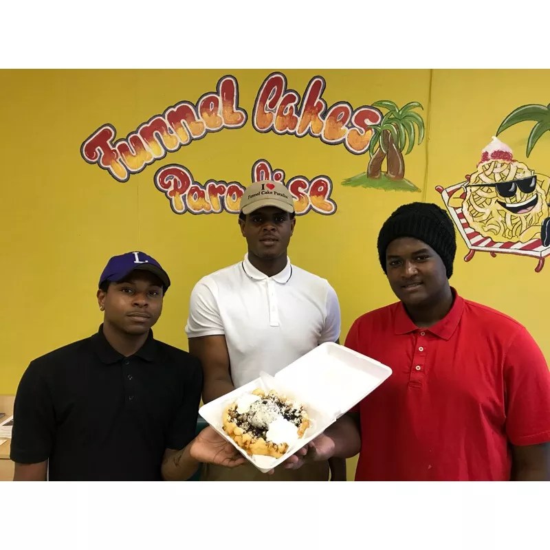 Funnel Cake Paradise is a family affair. From left: employees Octavian McCraw (owner Tina Owens’ nephew), Dominique Hearne (Owens’ godson) and Dequalynn Hearne (Owens’ other godson).