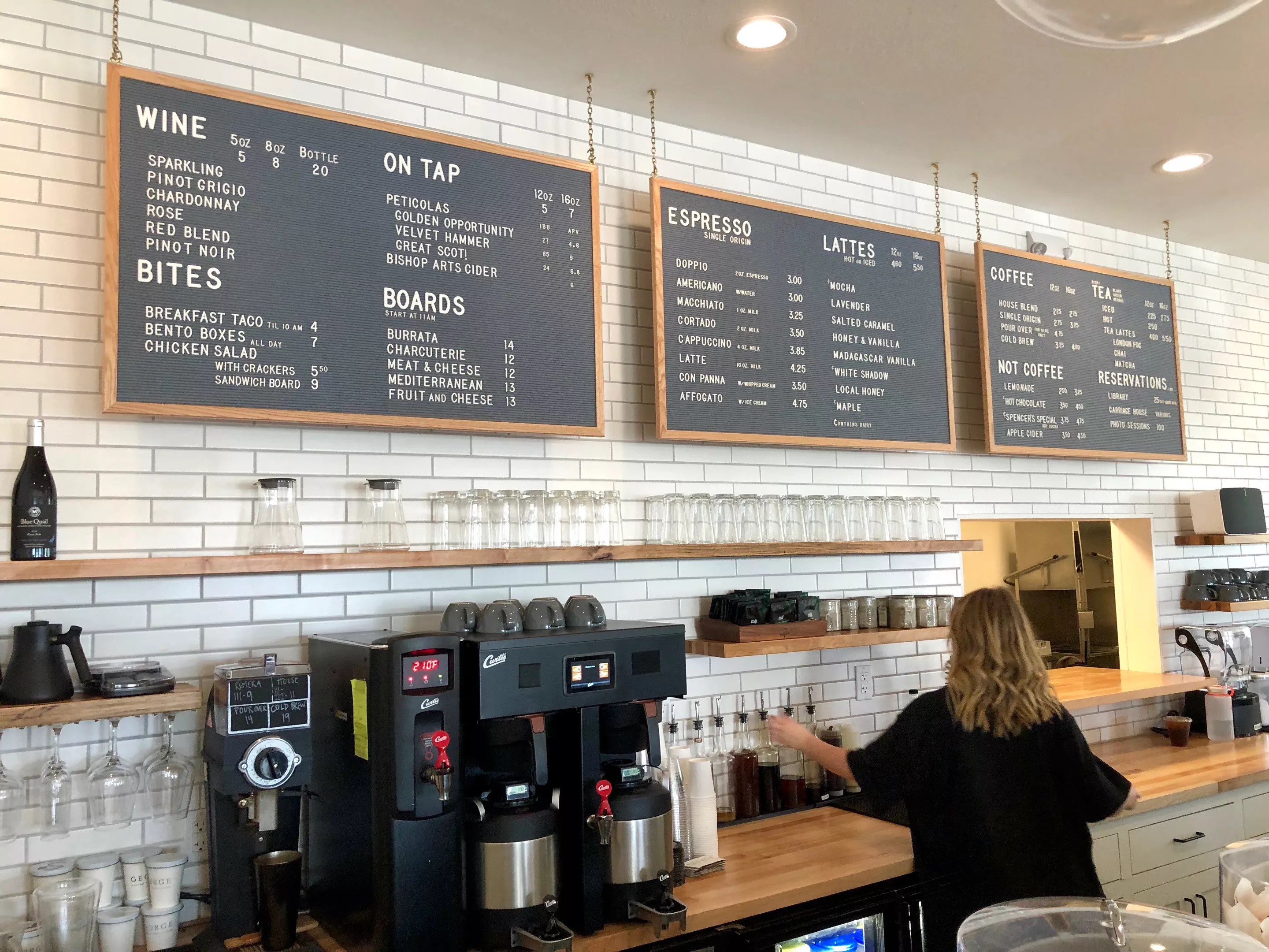 Visiting Old Town Coppell, tucked behind a swath of office buildings and warehouses, you almost feel like you’re in a seaside New England town, not the middle of Dallas-Fort Worth. George fits in perfectly; it’s a white clapboard building with a porch out front and patio with picnic tables to the side. It looks more farmhouse than coffee shop.