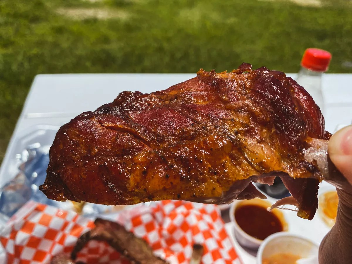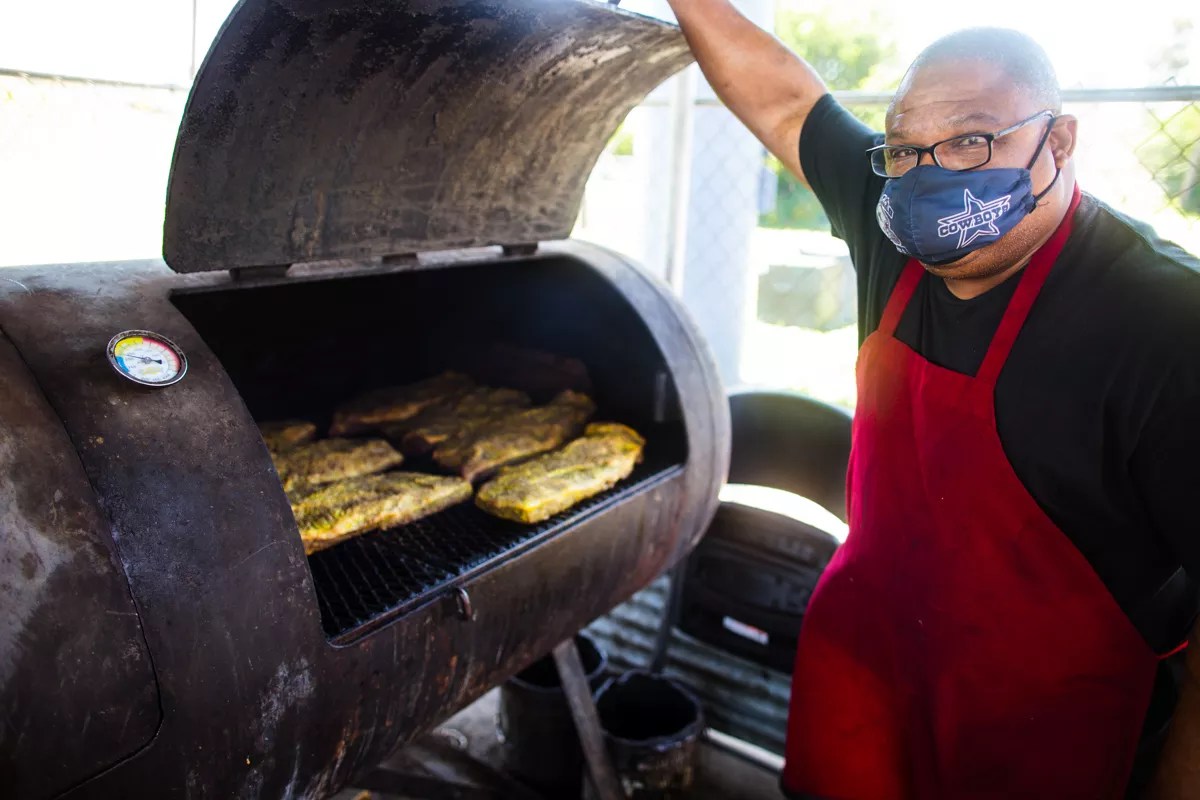 On this sunny day, our photo obligations met, we devoted both of our hands to the succulent brisket, ribs and sausage from Harris Bar-B-Que in Cedar Hill. We were trying to subdue the urge to go full ham, as we’ve got a reputation to uphold of being somewhat civilized. Masked up, owner Kelvin Harris appeared next to us as we began to eat at the picnic table next to his eponymous restaurant.