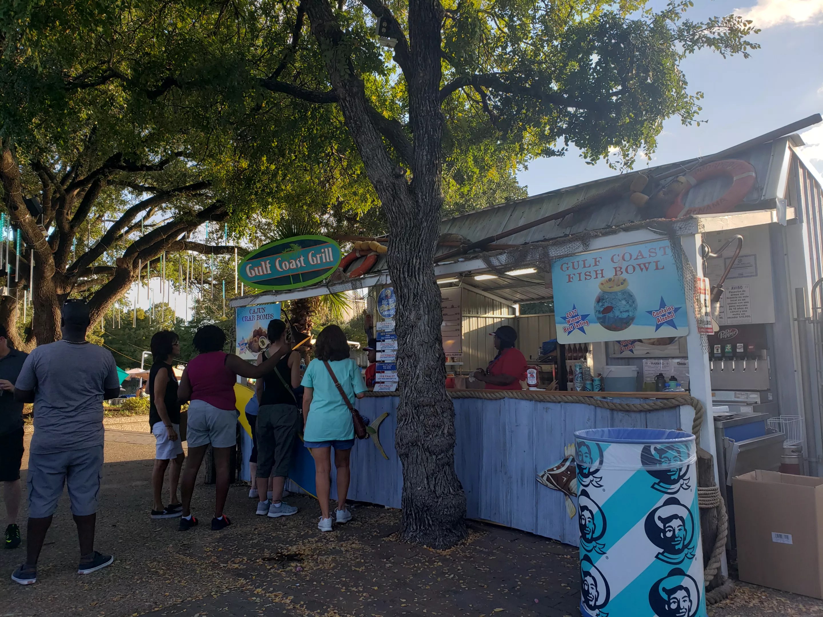 On Nimitz Avenue (the road between the Chevy Main Stage and the Go Texan Pavilion), look for Villa’s Seafood Village for more seafood dishes.