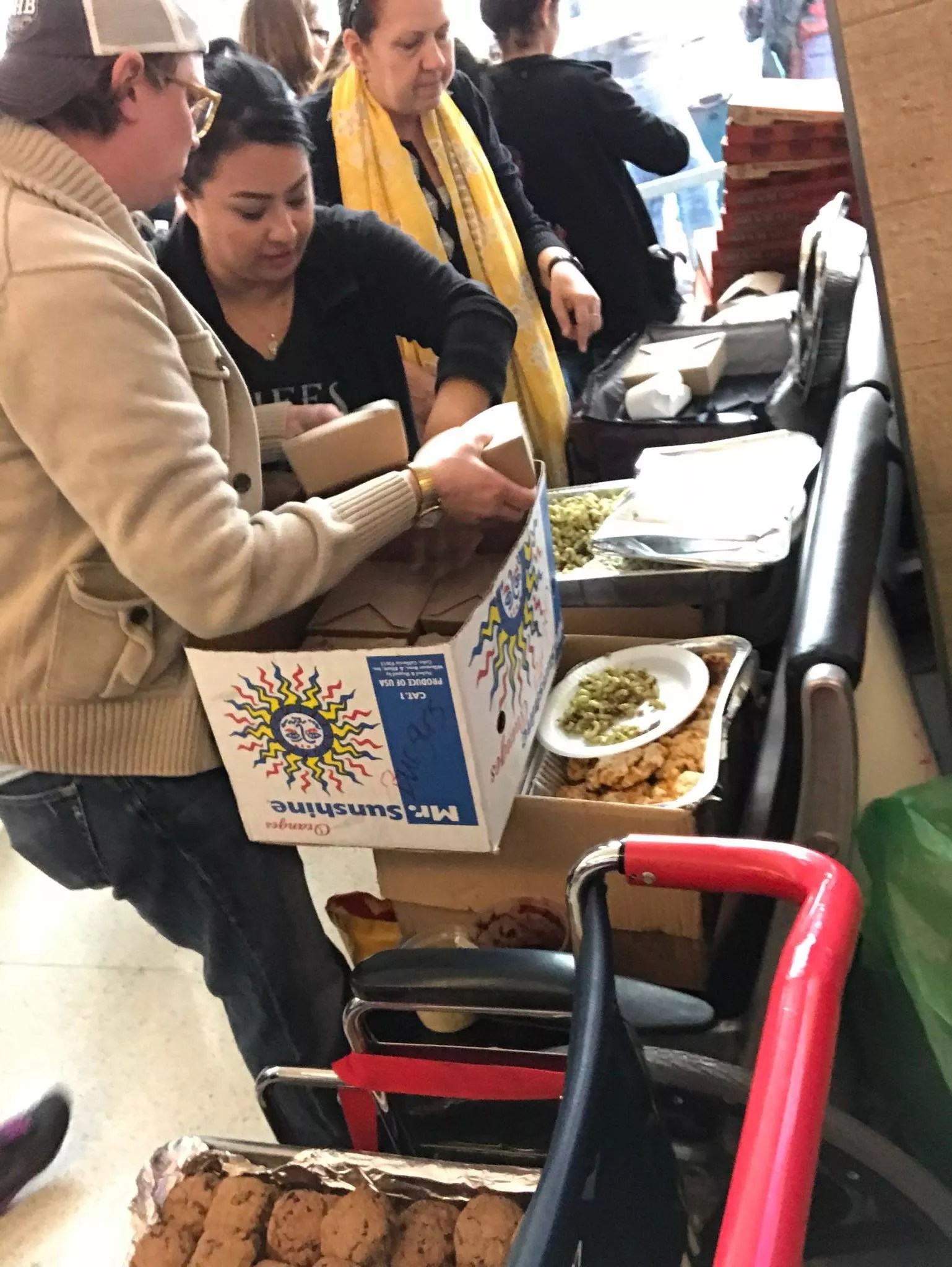 The food was primarily meant to support the attorneys and volunteers who gathered at the airport to offer up their services to the remaining travelers from Iraq, Iran, Syria and Sudan who were still detained at the airport Sunday morning. The effort grew to include distributing supplies to the throngs of protesters at the airport.