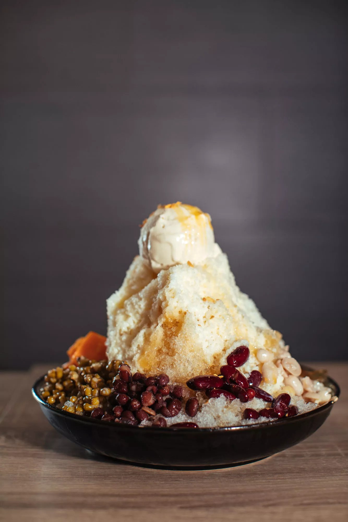 Shaved ice with sweet potatoes, beans, condensed milk and ice cream at Meet Fresh.