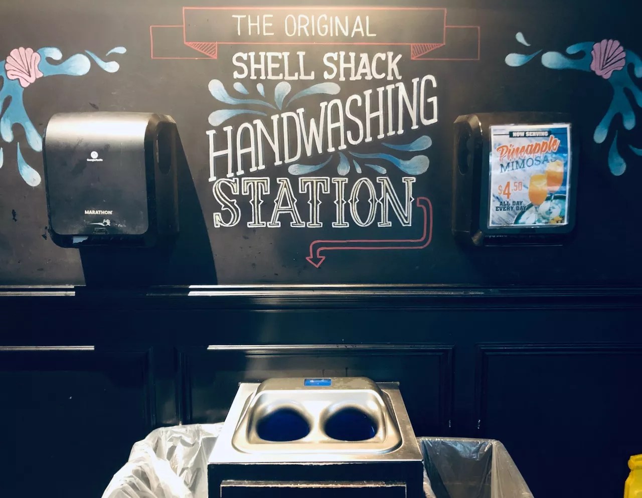 The hand-washing machine at Shell Shack is a game-changer. It’s a hospital grade contraption that, at first glance, might seem excessive. But, nope. After peeling and dipping a pound or two, you’ll realize how brilliant this is.