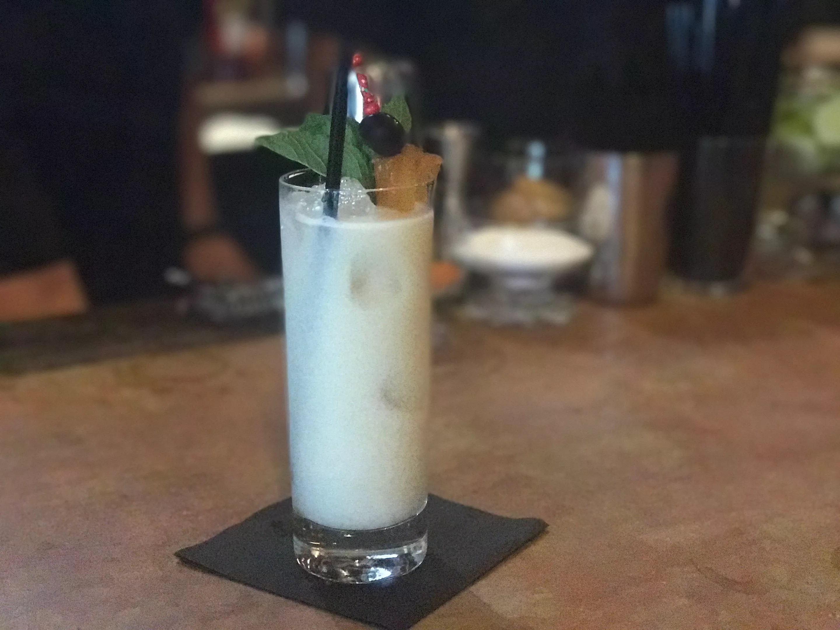 And then there were the pierogis. Skradzinski, who is also the restaurant’s chef, gives the potato-stuffed pockets a hard saute after they’re boiled, which gives them a crunchy exterior. The dumplings are filled with potato, chives and cheddar and are topped with buttery onion that can be made even more indulgent if you dump the accompanying melted butter on top. They don’t exactly remind me of the boiled magic I eat every year at the Perch, Peach, Pierogi and Polka Festival in Port Clinton, Ohio, (yes, that’s a thing), but when dunked in sour cream, they’re a fun bar bite. The Island 2826 is made with Flor de Cana rum, lime, black pepper-roasted pineapple, coconut orgeat and hemp milk. Beth Rankin