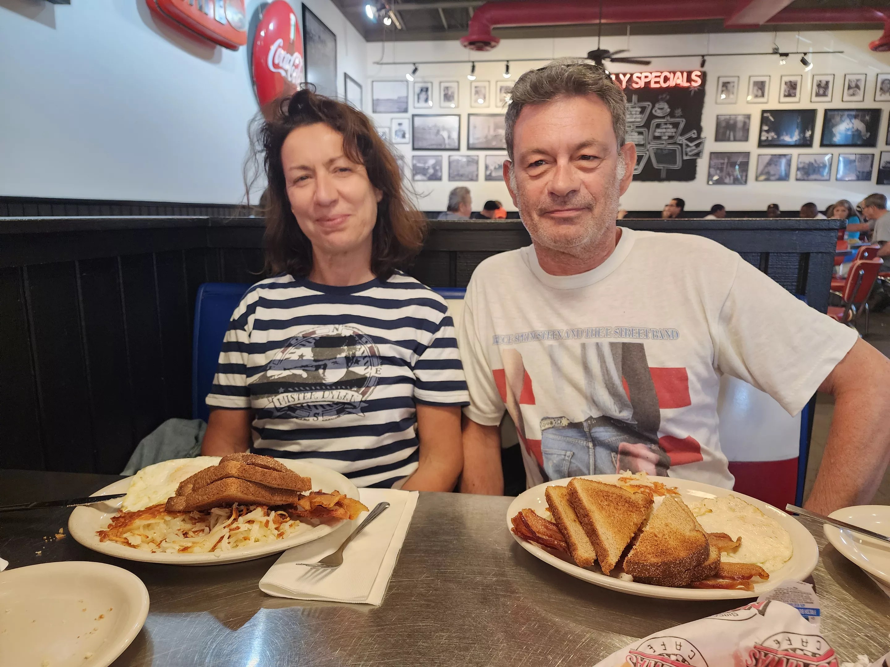 We took them to the North Dallas location of Norma’s Café, not really knowing what to expect. We had high hopes, though, because they went through a couple dozen eggs and a few rashers of bacon during the breakfasts at our home. We had to explain to them what hash browns were, and how to order eggs at an American diner (terms such as “over easy,” “sunny side up,” etc, surprisingly, do not translate well to French.)