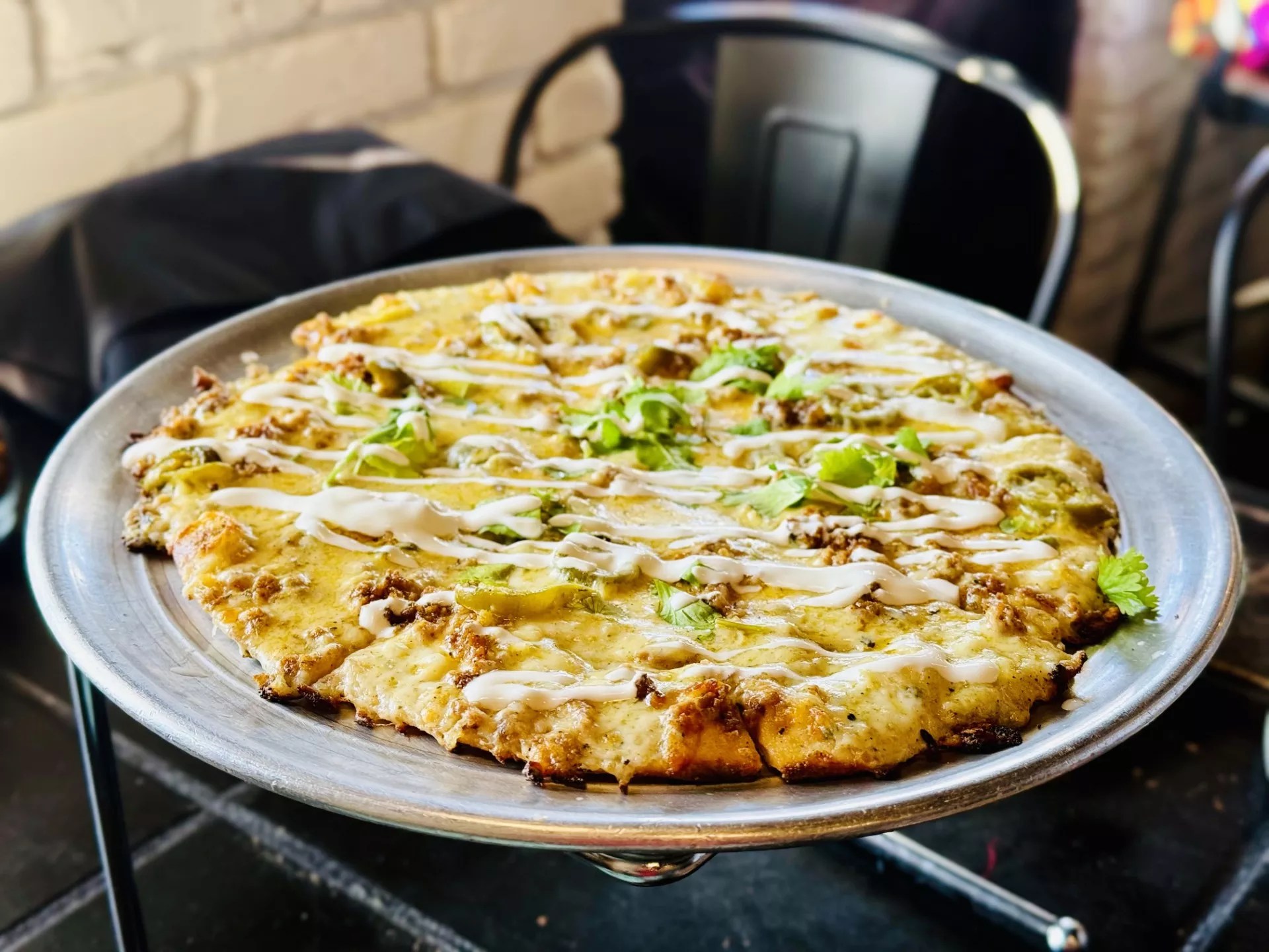 The focus here is simple: creative craft pies and local-only brews. You can customize your own or choose from a dozen signature pizzas, not counting the limited-time or “secret” menu options. And they come in just two sizes: 10-inch personal-size or 14-inch large.
