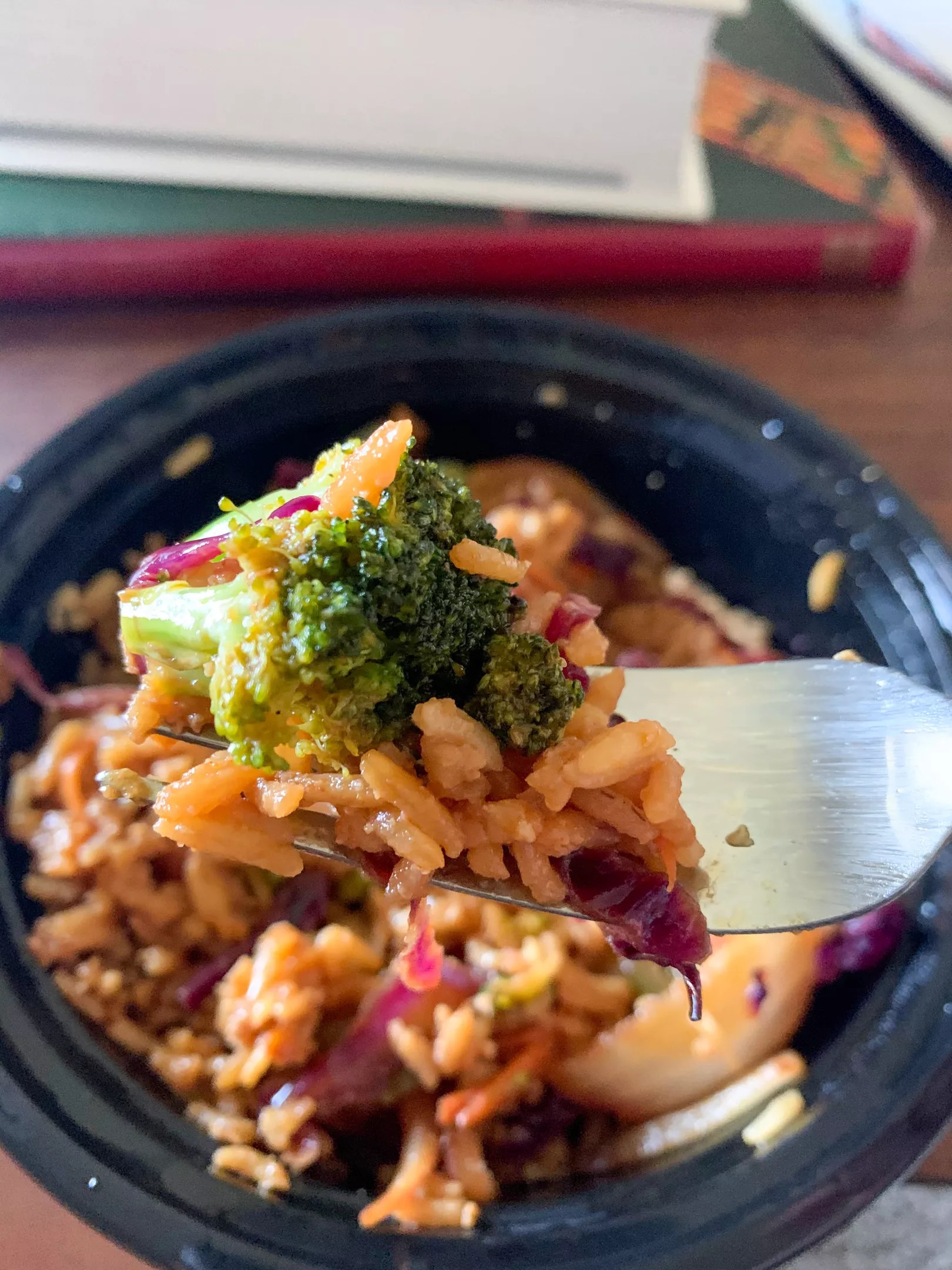 Less obvious on the menu is a dish that travels well: the Iron Fist ($7.99). It’s a bowl of fried rice with cabbage, carrots, broccoli, bell peppers, green onions and more of that bomb sauce. That sauce is perfectly suited for vegetables and makes this bowl addicting. The meal itself traveled well in a 15-minute car-ride home, and saving half of it for the following day’s lunch worked, too. (I throw it in a small glass dish with a bit of water, cover with foil and bake at 350 in the toaster oven for 15 minutes. It’s my usual process for reheating fried rice, and I endorse it.)