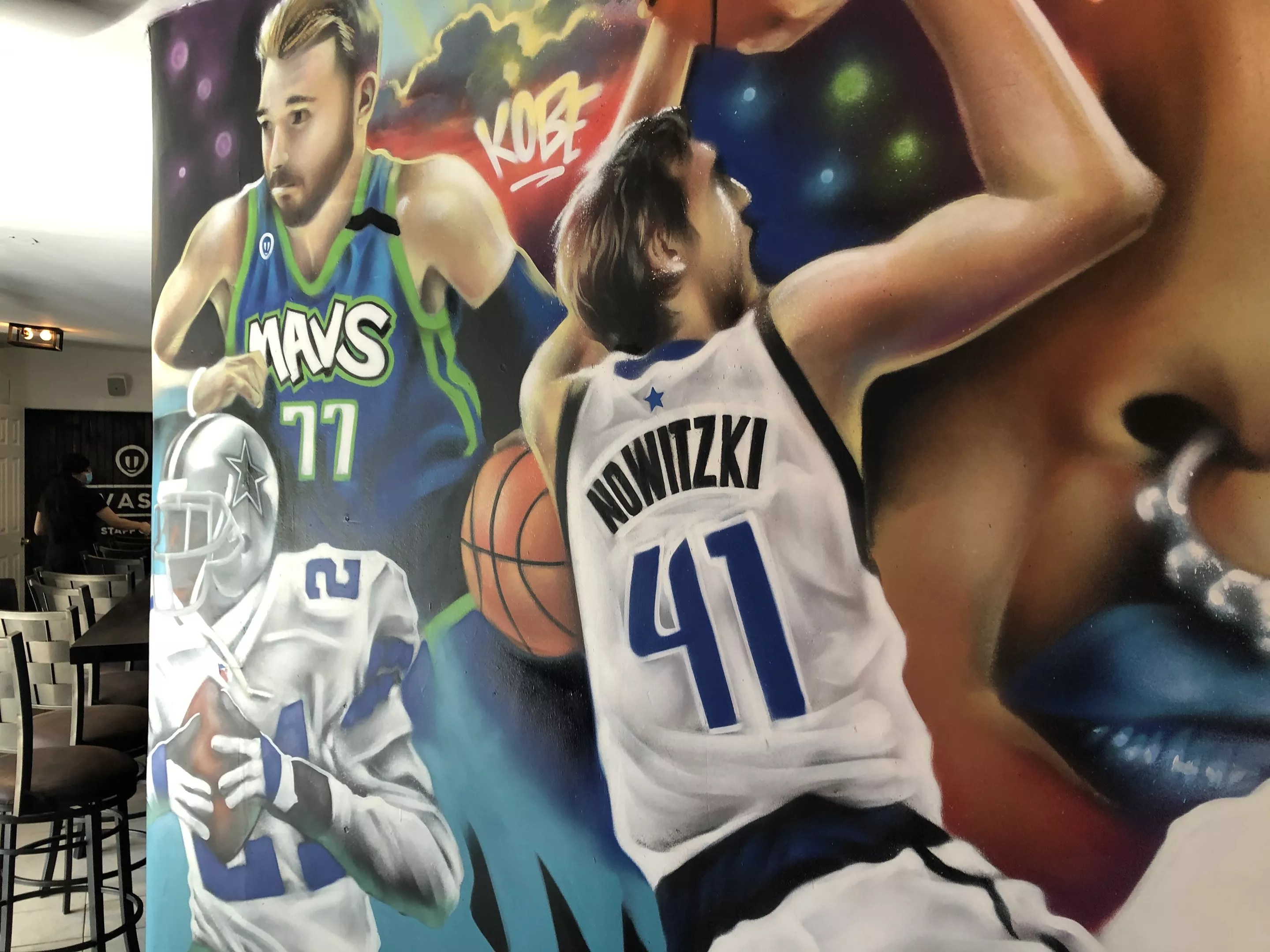 If you are fortunate enough to grab a seat before Invasion reaches capacity, you’ll find that the inside is delightfully Dallas. There is a mural featuring Dallas fixtures, both young and old. Dirk Nowitzki, Luka Doncic and Post Malone can be seen on this mural. Plus, owner Airric Heidelberg keeps an eclectic playlist of hip-hop and country music playing throughout the day.