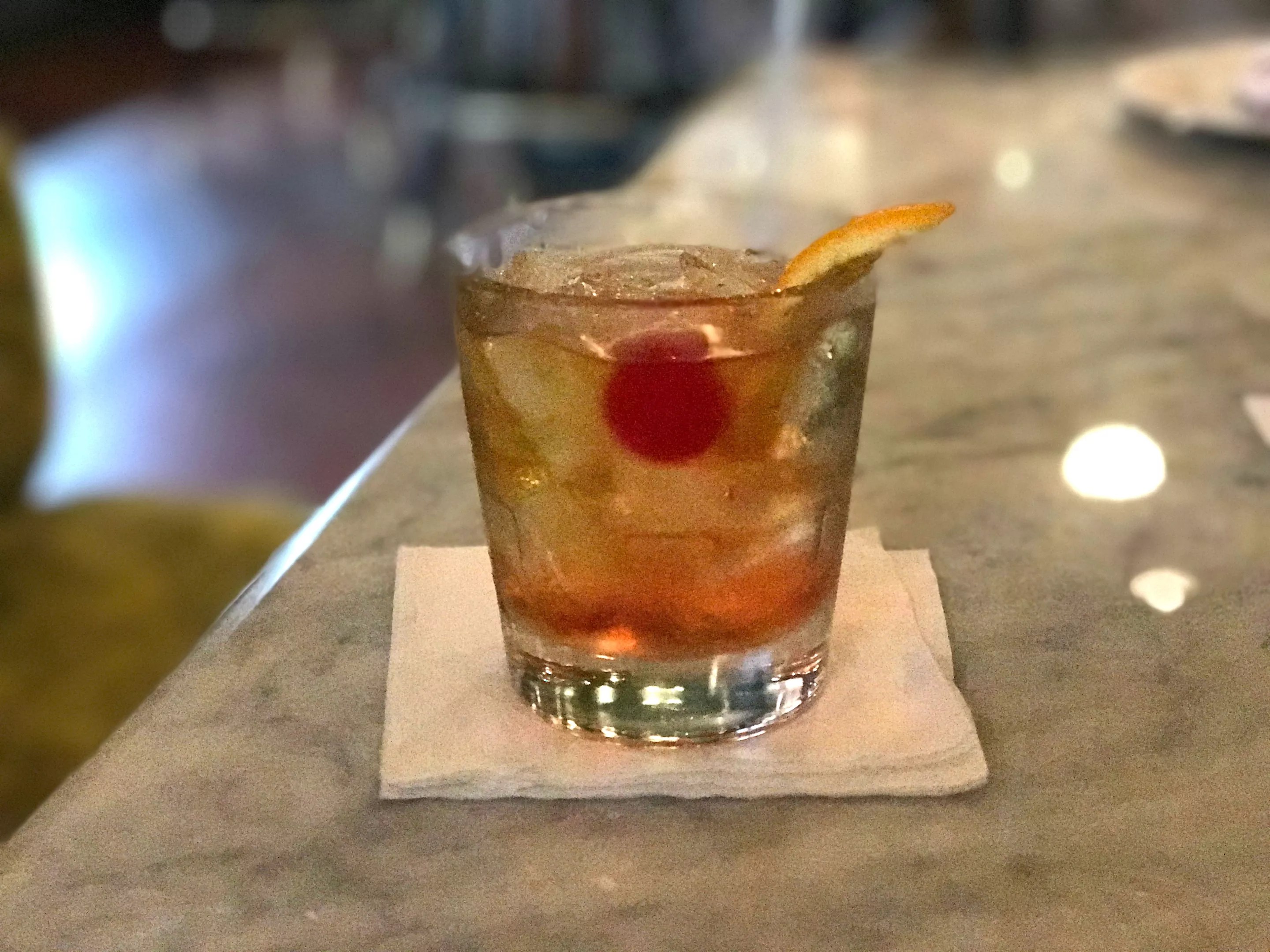 Stellar’s space, heavily redesigned, is perky and cheerful but, save for the lighting, in no way midcentury modern; the buildout is far too reliant on current design trends to fit the MCM aesthetic. The bar area features a glowing white marble bar and good lighting, but the attractive bar is marred by the addition of several comically large televisions. Stellar is not even remotely a sports bar, so why bother with such massive TVs? It’s one of the first signs that this place is having an identity crisis.