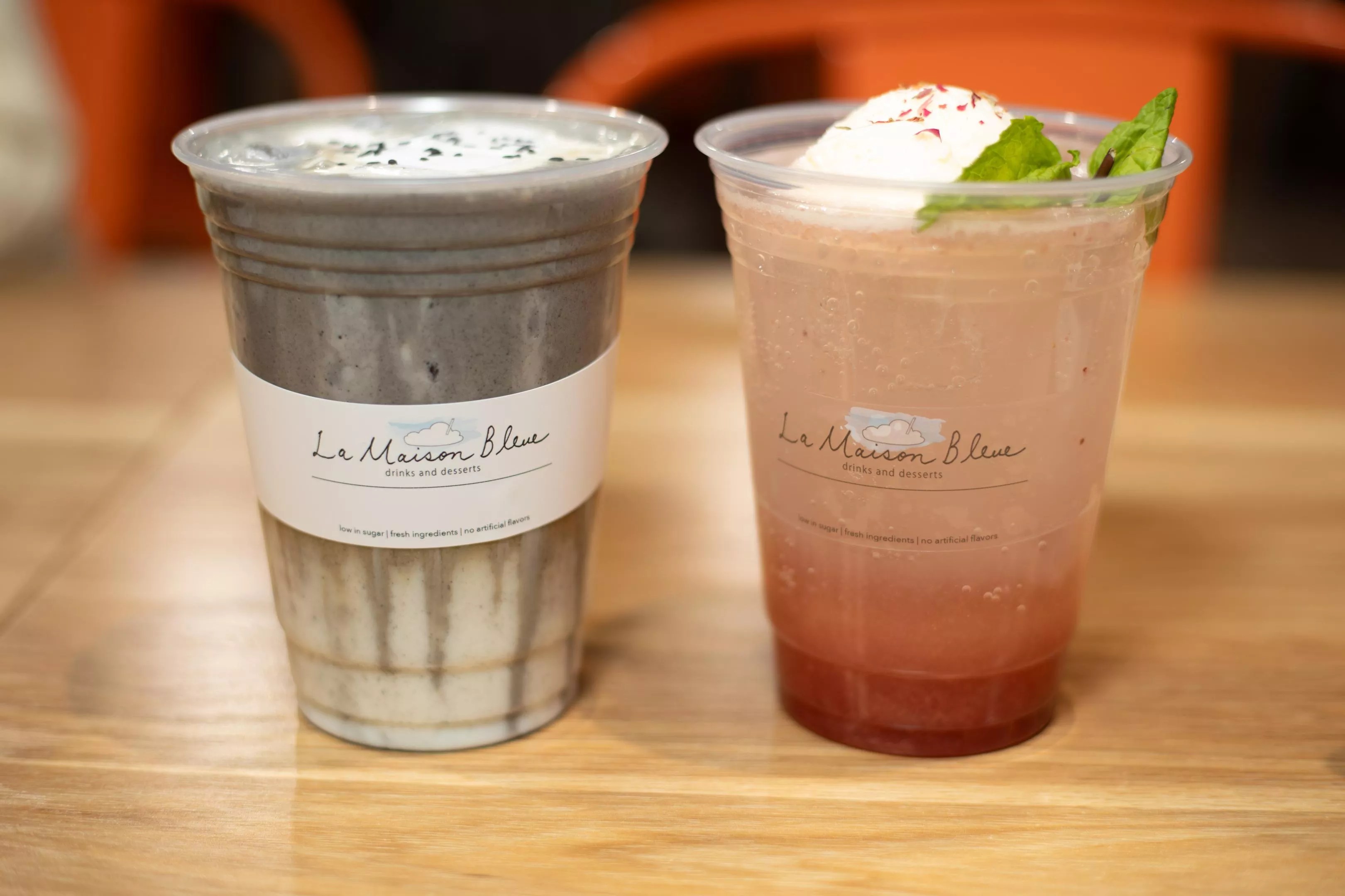 You can get seasonal drinks like a black sesame milk tea or yuzu strawberry tea at La Masion Bleue’s storefront inside Mitsuwa Marketplace.