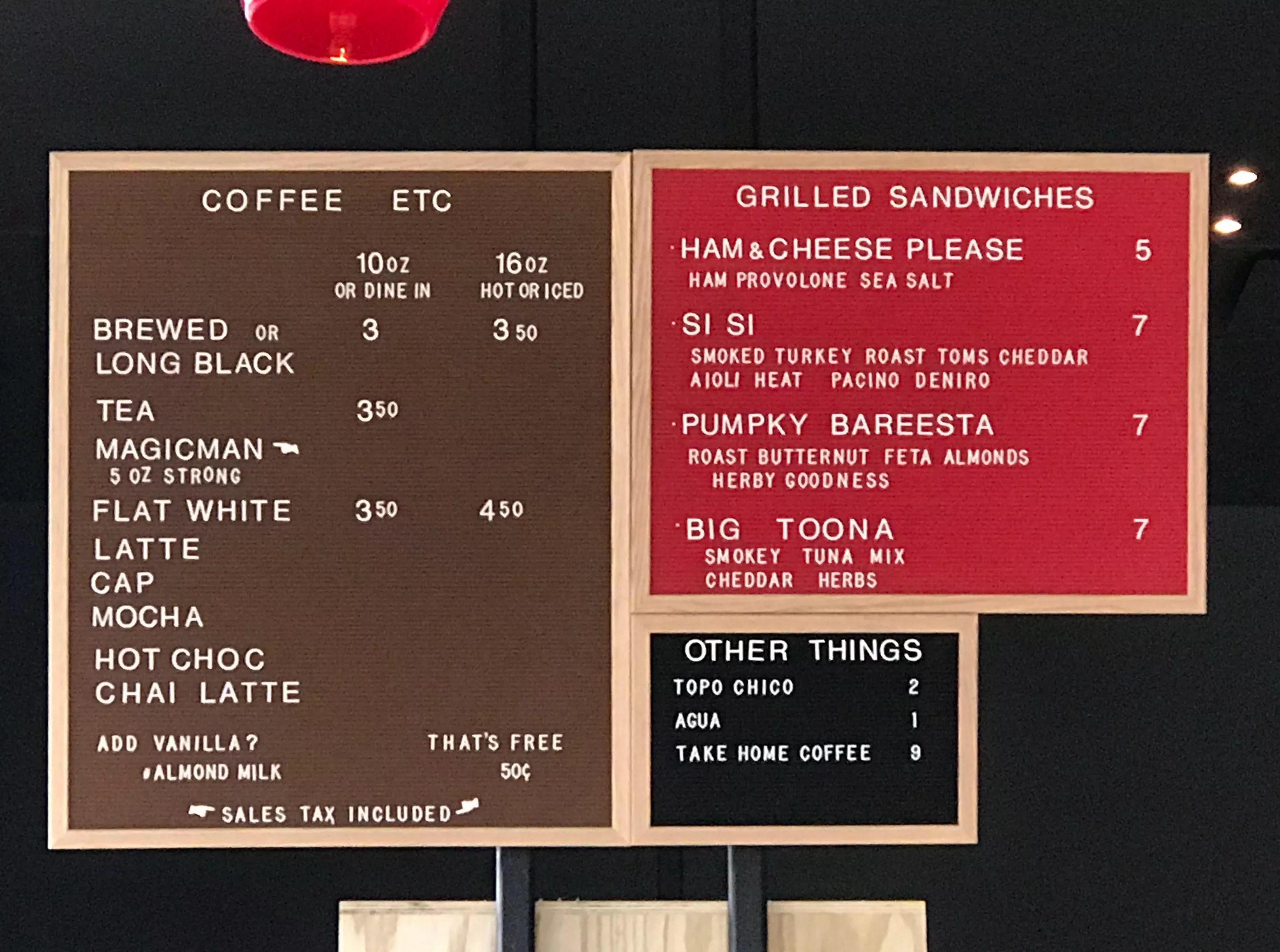 LDU also has a small, cheeky menu of grilled sandwiches – the Pumpky Bareesta ($7) is made with roasted butternut squash, feta, almonds and “herby goodness” – but otherwise sticks to the coffee, which is a welcome departure from many modern coffee shops.