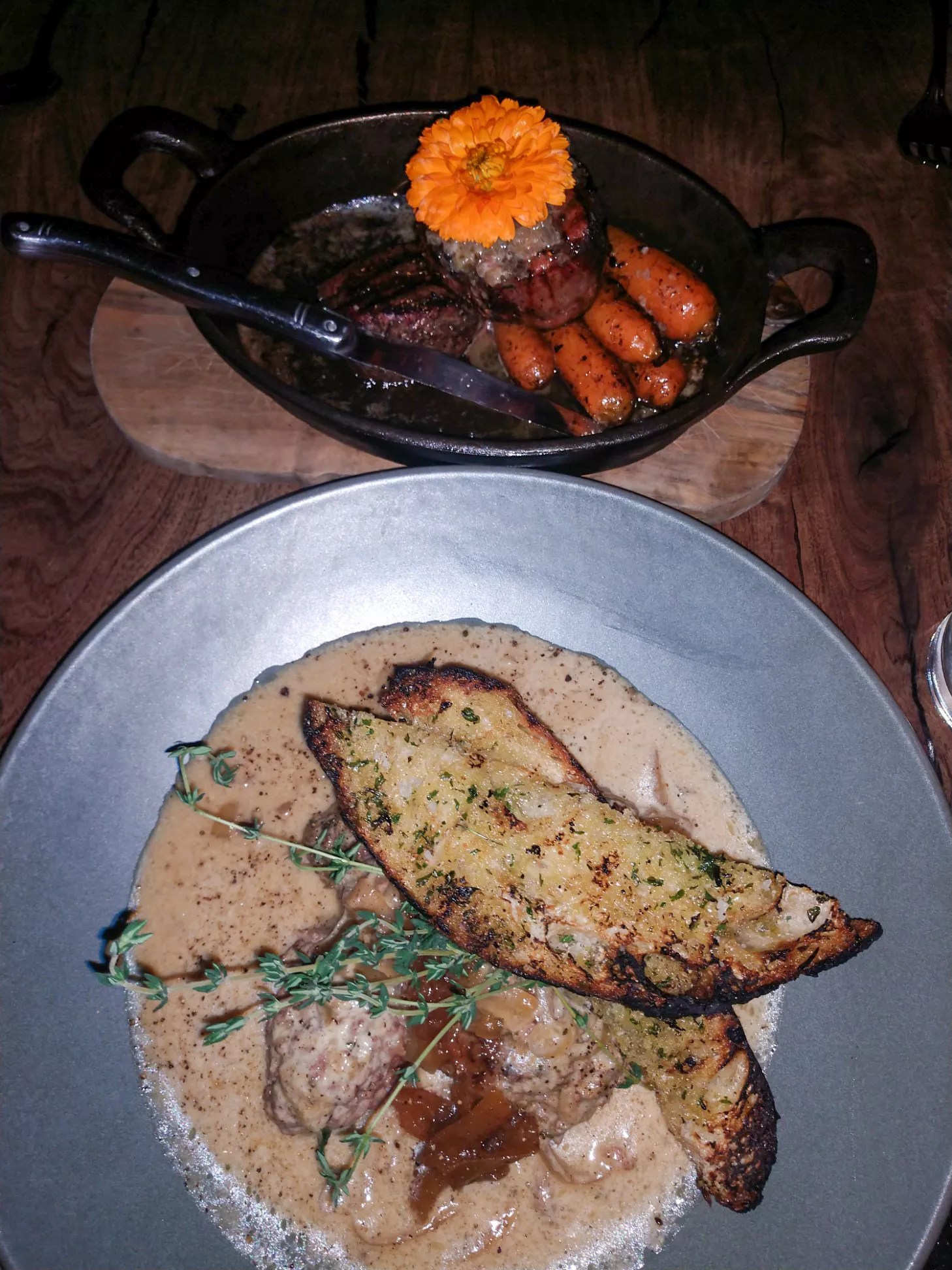Gates describes her style as European. Her mother is Swiss, and a recent menu featured a delicious charred cauliflower as an appetizer and nilgai meatballs that wouldn’t have been out of place on a fine-dining menu in central Europe except for all the Texas ingredients (OK, nilgai are historically Indian; Sam Houston was historically Virginian; nilgai are Texan now). In fact, Gates has been sourcing every ingredient except seafood from Texas, much of it more local than that. She employs a gardener named Mr. T to grow a large variety of vegetables and herbs on her property, and she buys from an urban farm in Alpine and a specialty farmer in Fort Davis.