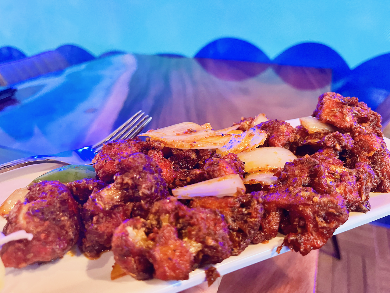 Start with the Highway Chili dish ($11.99) that comes with either crispy cauliflower or chicken, coated in a chili garlic sauce. A popular dish served in North India, it’s cooked in a deep pan along the side of the highway, hence the name.