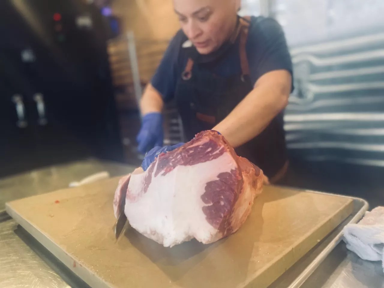“I was a little nervous,” Covarrubias says while trimming fat off a slab of raw brisket in her smoke shack at the back of Loro. “I was like, ‘How am I going to carry this brisket when it’s half the size of my body. Am I going to be able to carry a case of it?'”