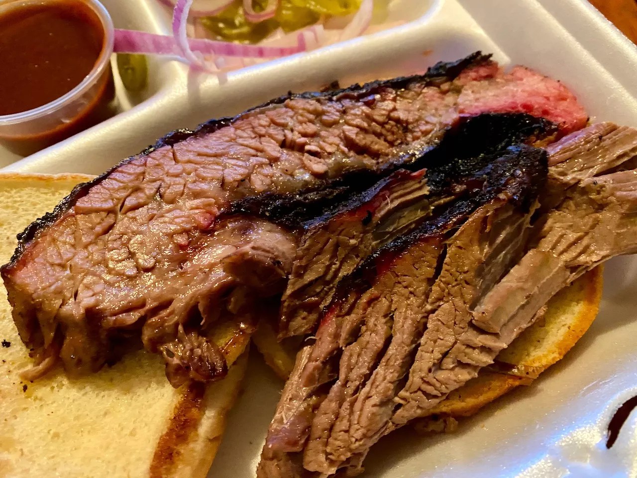 A sliced beef sandwich came loaded with several thick slices of brisket.