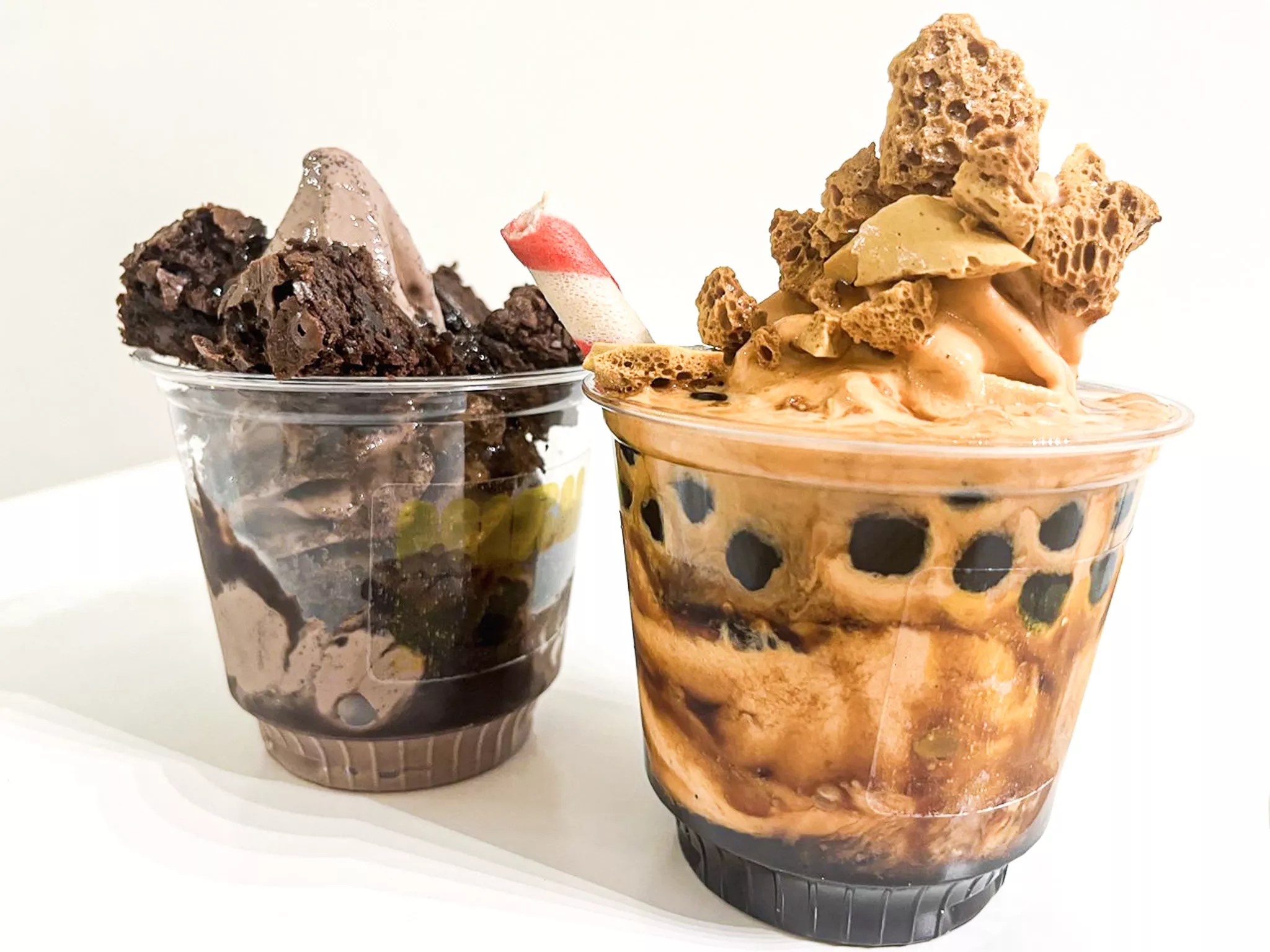 Miruku offers many beverage options that enticed us just as much as the ice cream. The signature Dalgona cafe latte ($5.25) comes either hot or iced, depending on preference. It’s made with a lightly sweetened Dalgona coffee base topped with a layer of sweet whipped milk foam. The latte is a satisfying balance of bitter, creamy and sweet all at once. What’s even better is the toffee-like honeycomb candy that comes crumbled on top. We found ourselves craving another order even before we finished the first.