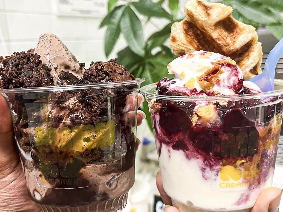 You can order their soft serve in a cup ($5.25) or a house-baked waffle cone ($5.50). Add sauces, compotes and crunchy toppings if you’re feeling creative. We particularly enjoyed the croffle – an Asian delicacy made of flaky croissant dough pressed into the shape of a waffle.
