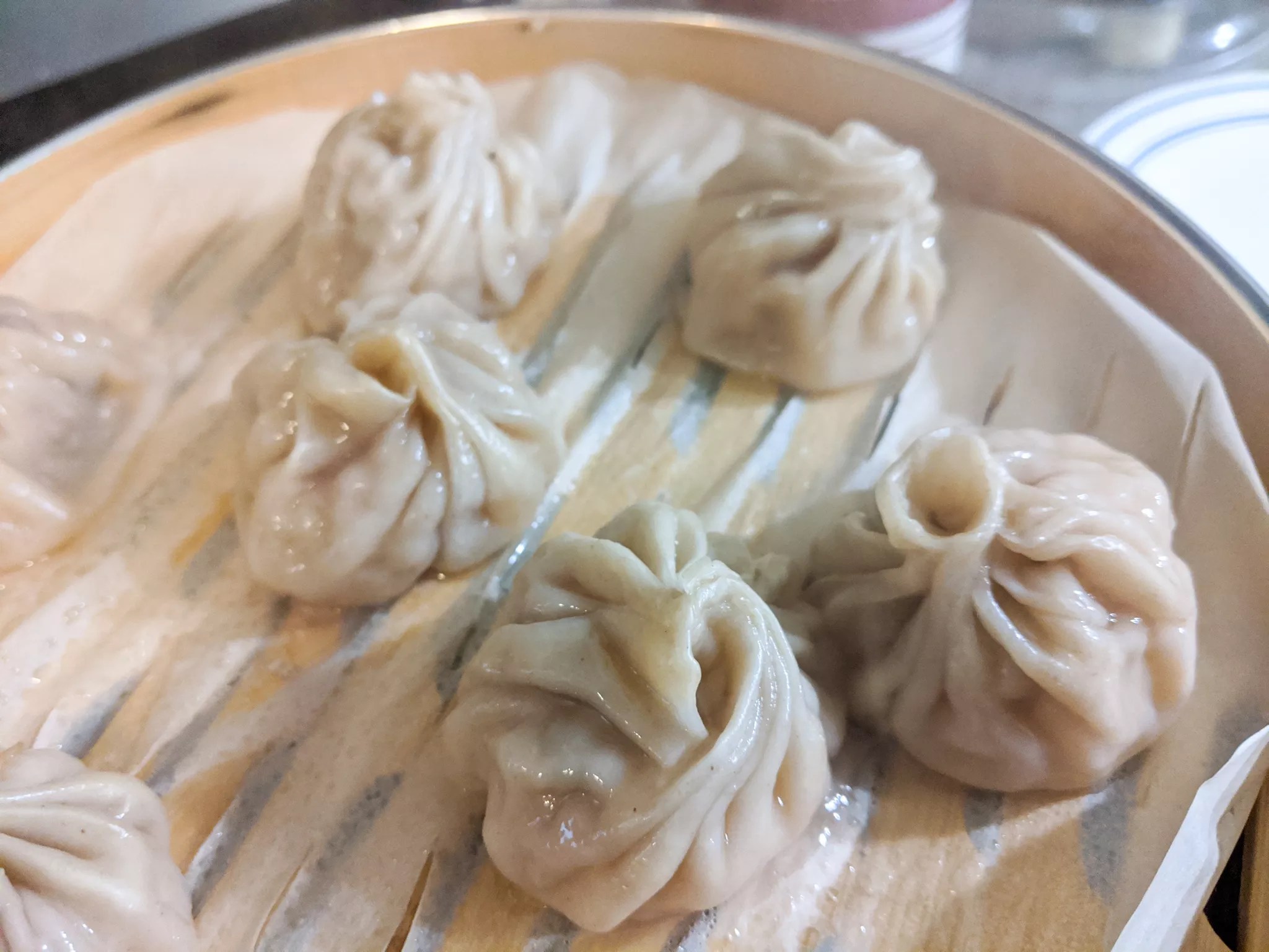 A trickier question is how many to prepare. Each bag contains a dozen momos. I opted to steam four per person per meal, along with a vegetarian side dish; a hungrier person could easily eat more, while one or two momos by themselves can make a hefty snack.