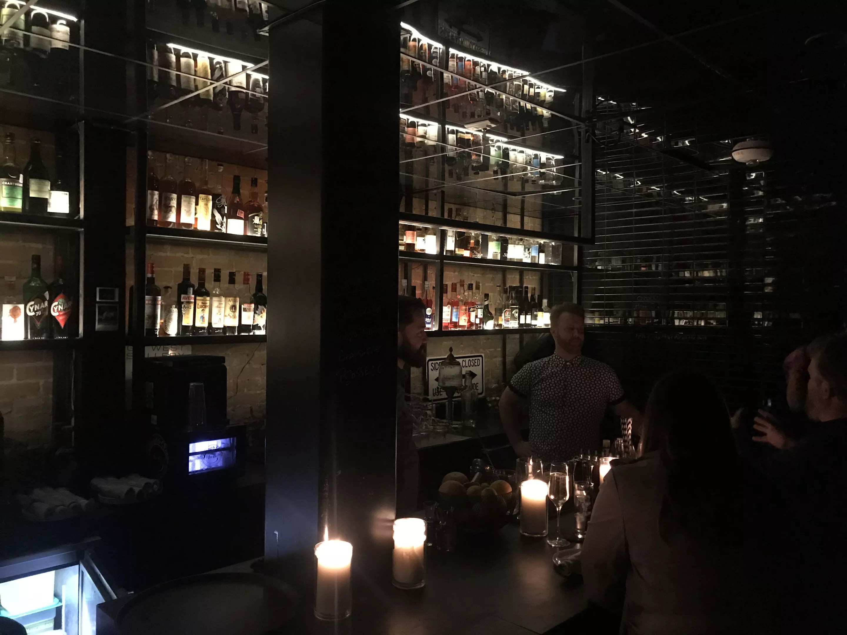 It’s dark in here, but there’s plenty to drink – and you can order food off Harlowe MXM’s menu.
