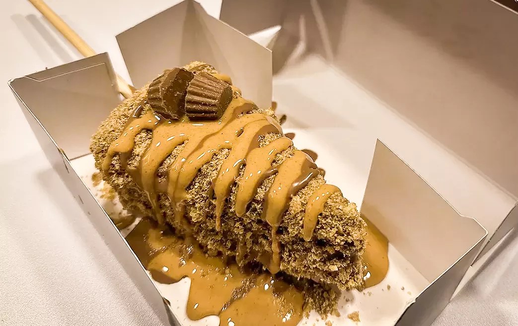 Canadian native Stephen El Gidi’s Drizzle Cheesecake has become a North Texas favorite in the concessionary circuit. The treat made its first appearance at Six Flags Over Texas’ 2021 Holiday in the Park. The chocolate-dipped triangles on a stick stopped us in our tracks. Groups of people gathered around the hut passing around massive chunks of chocolate goodness. We had to jump in line.