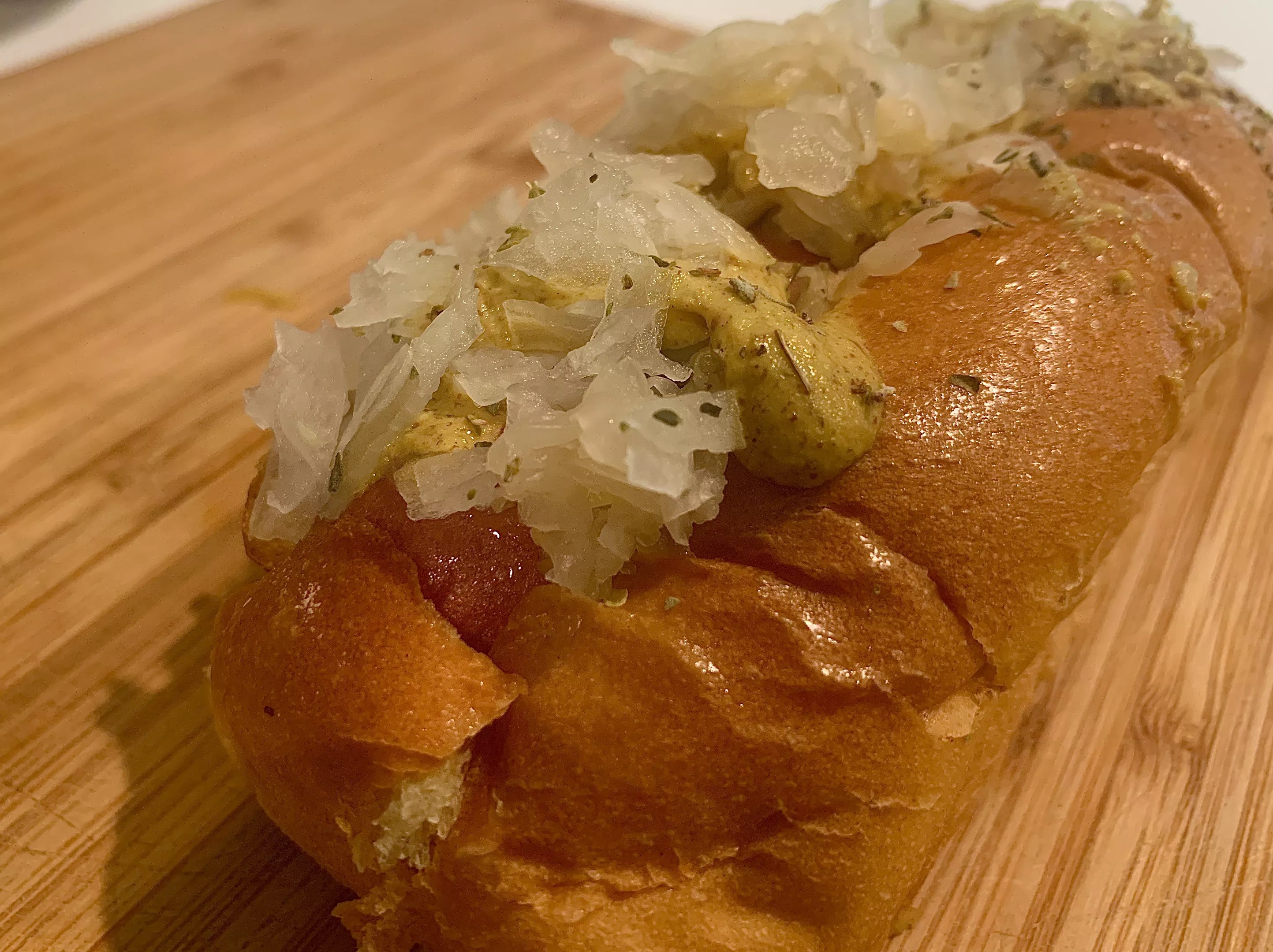Sauerkraut and brown mustard on the New York dog for .50