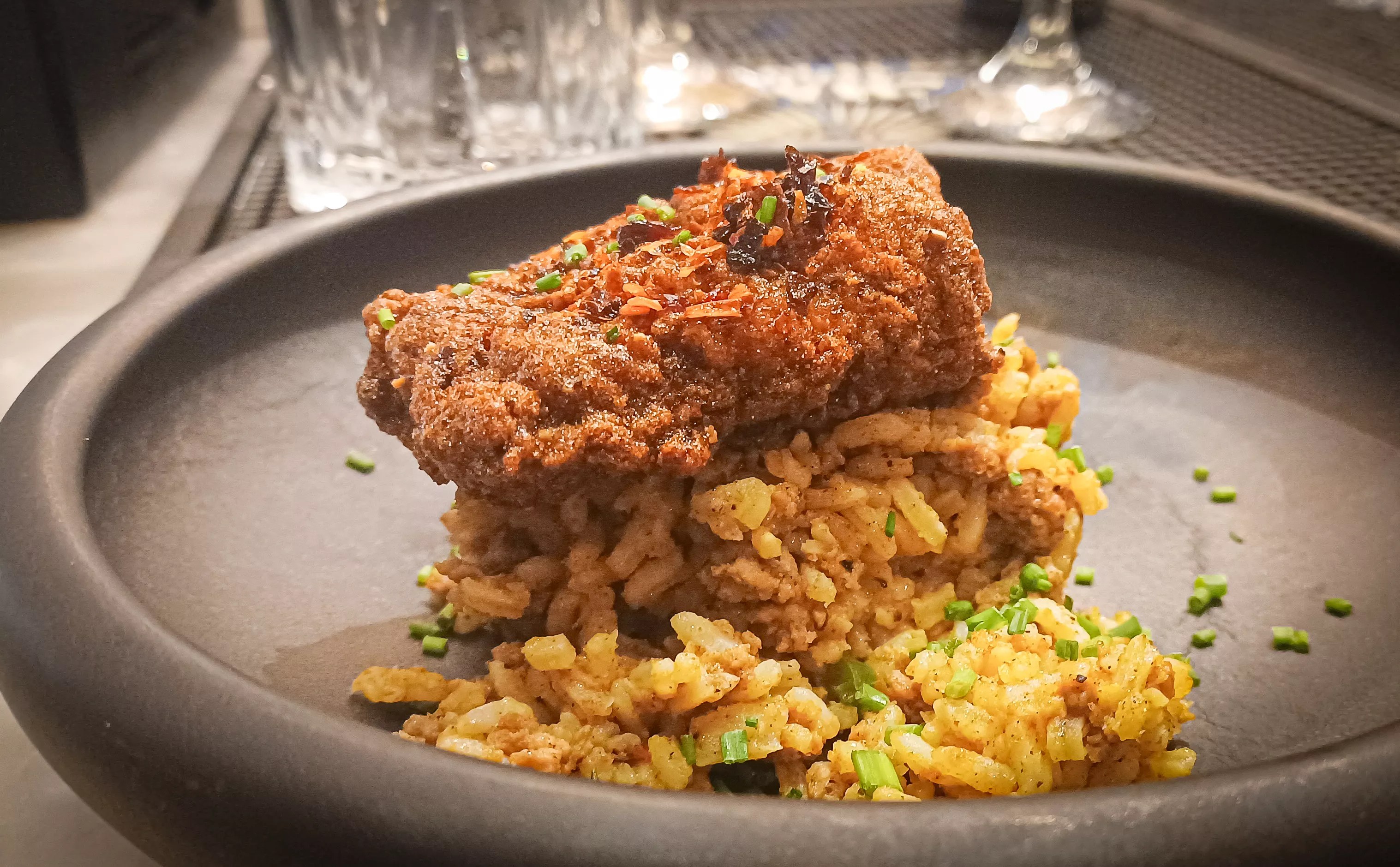Next up was the catfish over dirty rice, a Creole staple. Trust us when we say there’s no need for a knife, as this tender entree cuts like butter. This was by far the spiciest item of the night, so Cajun cuisine novices may want to approach with caution.