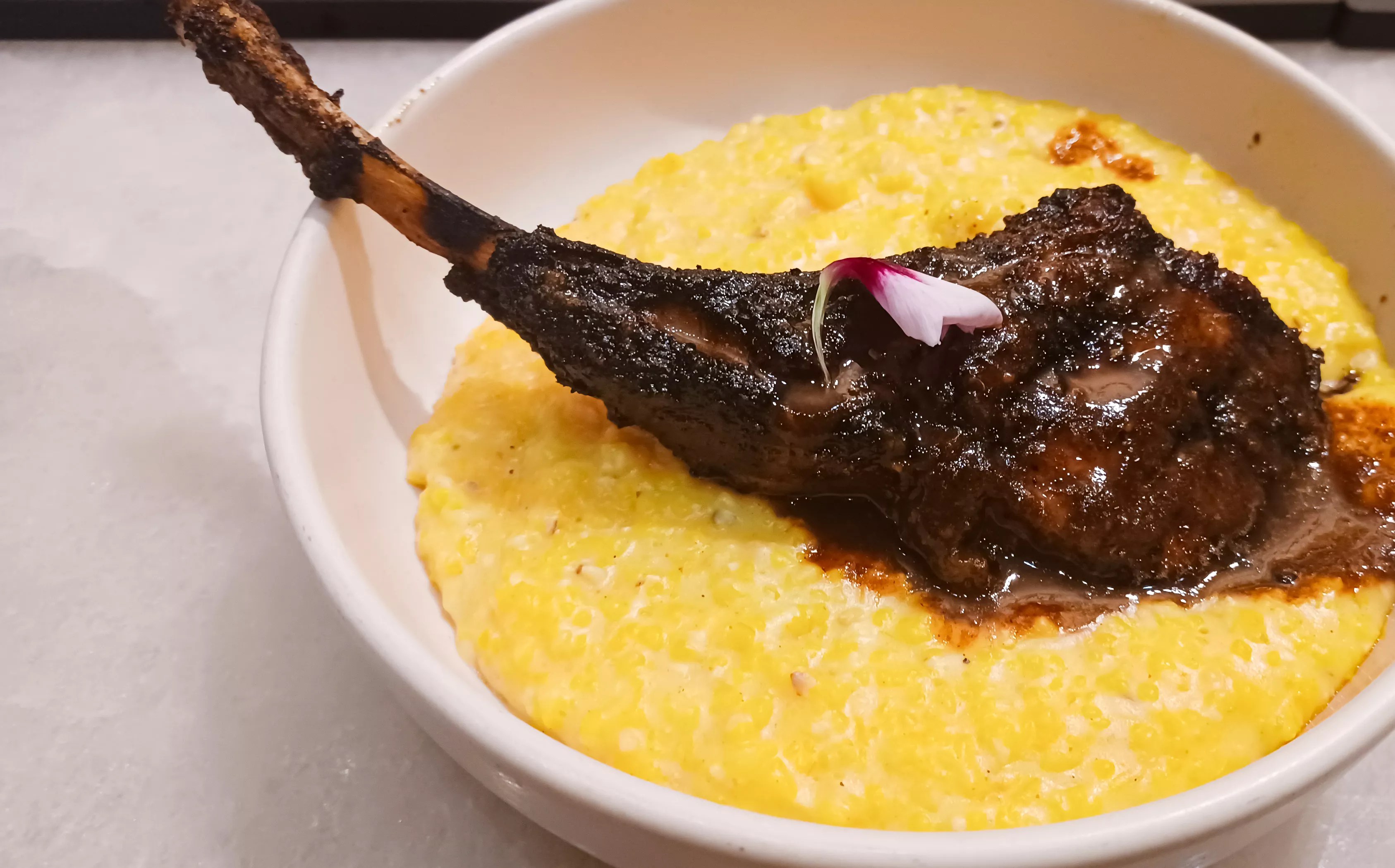 Lastly, we tried the Jerked New Zealand Lamb, served bone-in atop grits tossed with a light Meyer lemon gel. This dish was on the brunch menu; the lamb on the dinner menu comes over mashed potatoes. The jerk sauce pulls more vinegar than you might find in a typical Louisiana kitchen but was top-notch nonetheless.