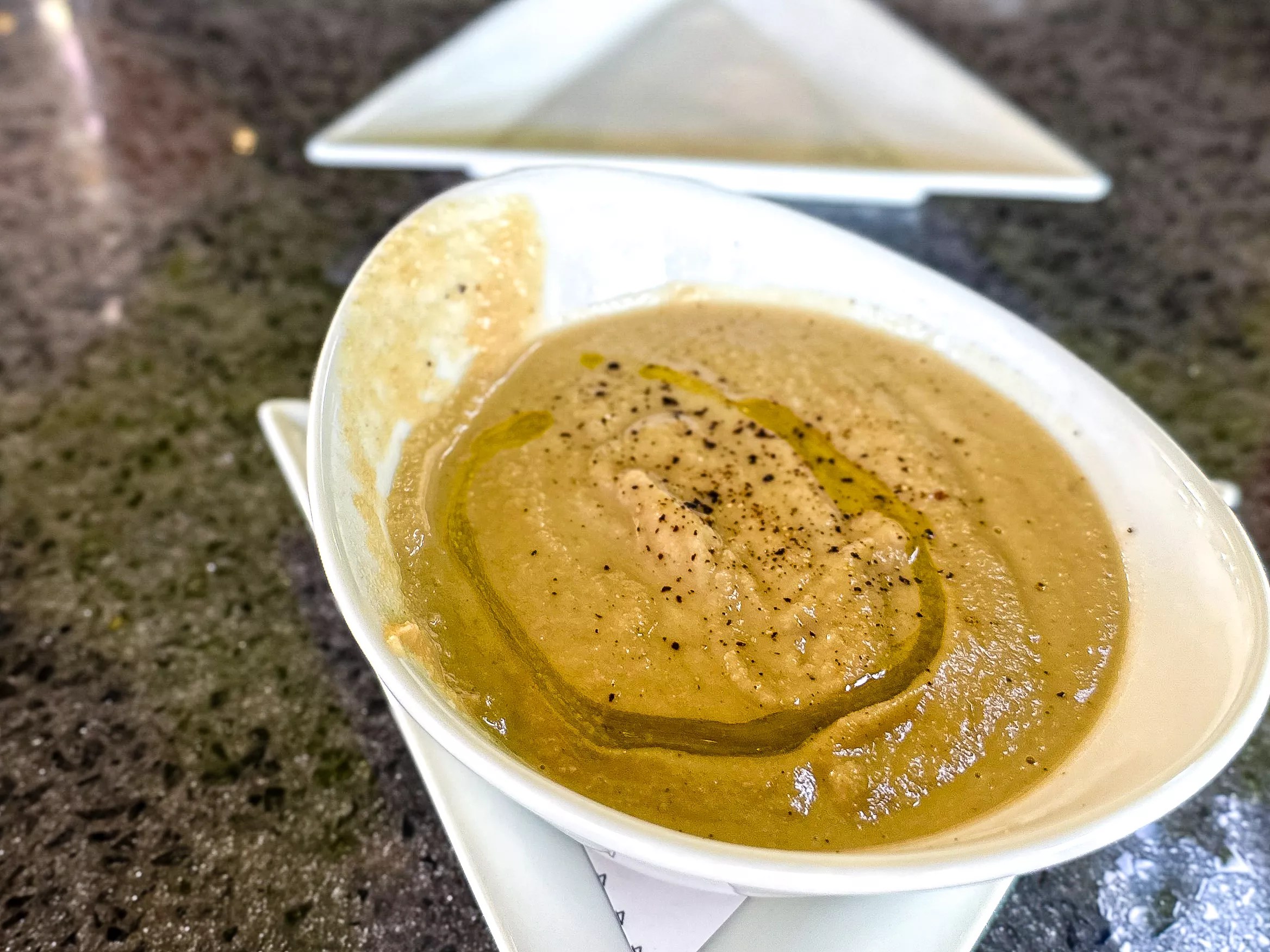 There are several bite options available: wine bar staples like citrus olives and charcuterie boards as well as flatbreads (sausage and sage, al pastor), soups, salads and handhelds (Argentine cheesesteak, pita pockets). Everything looked good, but after some difficulty deciding, we settled upon five to share: Tuscan hummus, cauliflower cashew soup, rustico meatballs, duck confit sliders and patatas bravas.