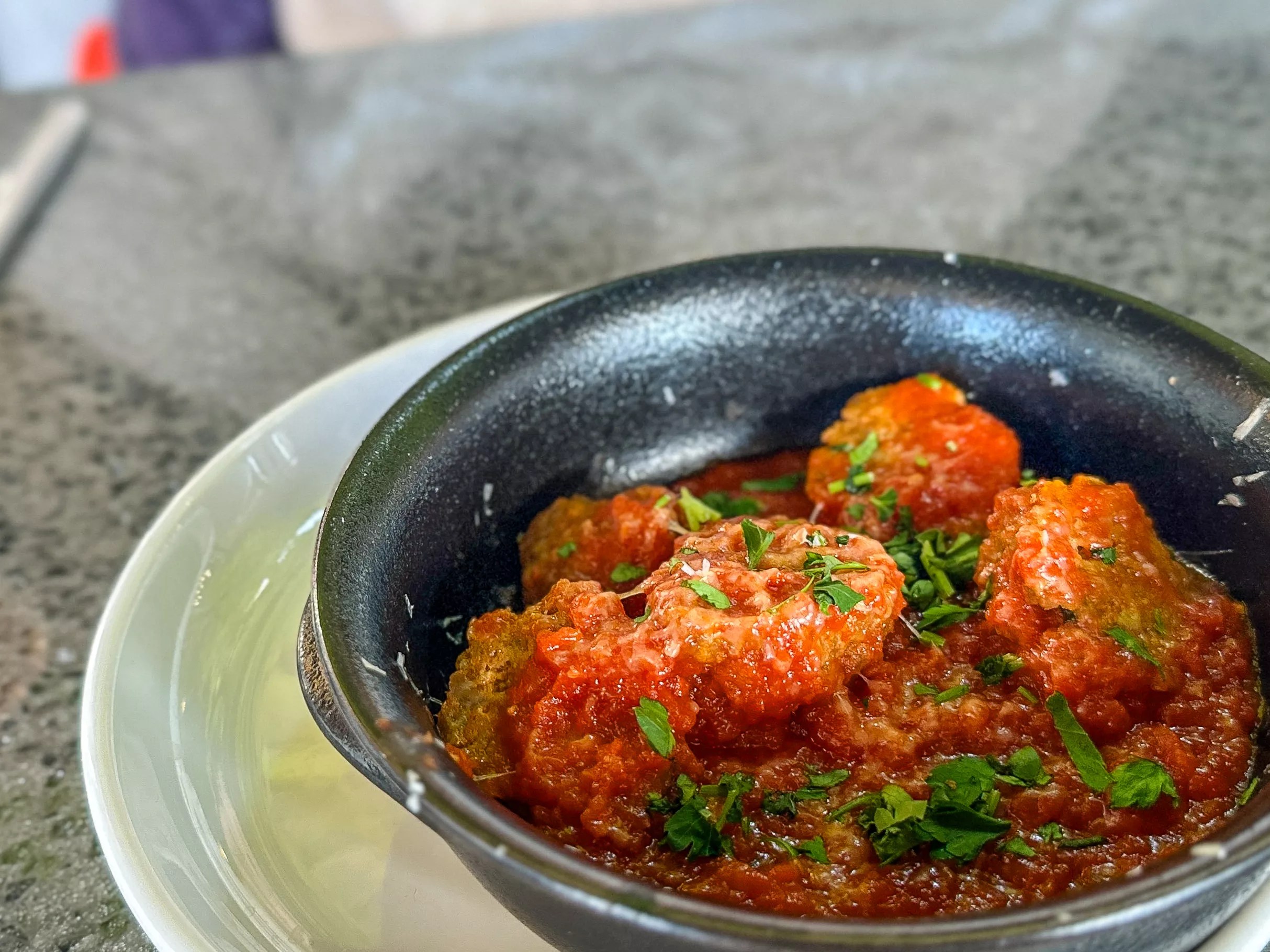 The soup can be had as a cup or bowl, and we went with a cup, which was more than enough: a rich, creamy base full of rustic flavor, just the perfect intermingling of cauliflower and cashew, neither overpowering the other. Dressed with a drizzle of olive oil and some cracked pepper, it had a nice presentation as well. Rustico meatballs. Hank Vaughn