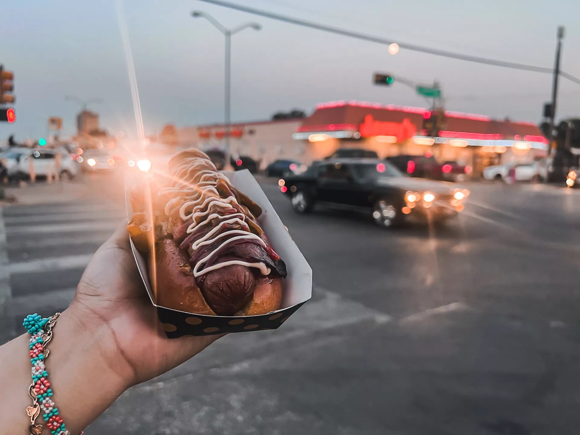 Olidogs’ menu options can be counted on one hand. For full coverage, we decided to get one of everything, including the limited-time Mango Pico Dog. As the sun disappeared below the horizon, we made our way back to where we parked to eat on the tailgate of our truck.