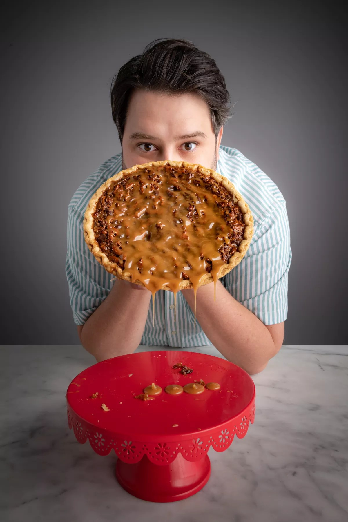 Chef Josh Harmon with his Lieutenant Dan pie.