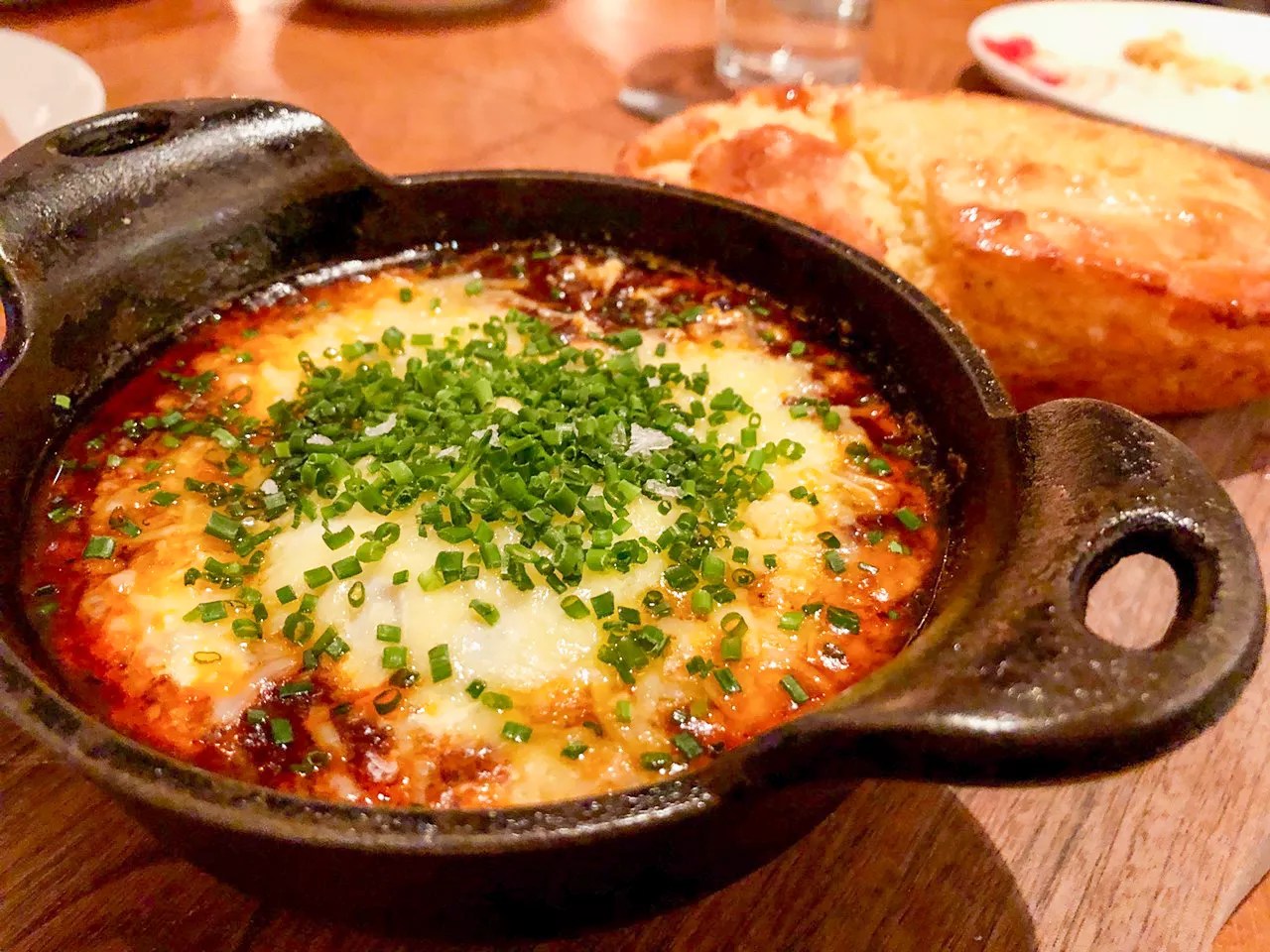 We’re going alpha-order here, so don’t think this whole list is going to be dishes served in miniature skillets; but this serving of red chili from CBD is perfect for one ($16). This bowl of grass-fed beef and seasonings, topped with an egg, is fabulous on a cold day, but welcomed with any weather. An order comes with a heck of a large serving of cornbread: It’s good enough on its own, but crumbled on top of that perfectly fatty bowl, you won’t even want to share a bite with others at your table.