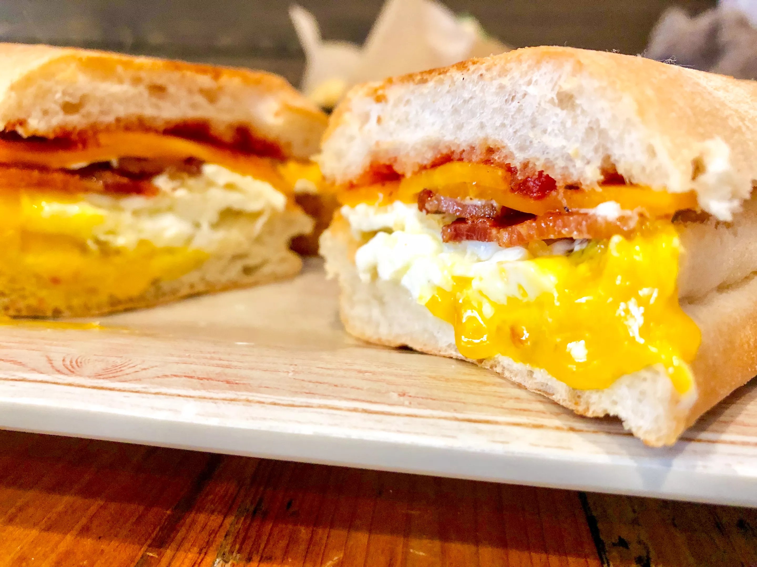 Spicy Bacon Ciabatta Breakfast Sandwich