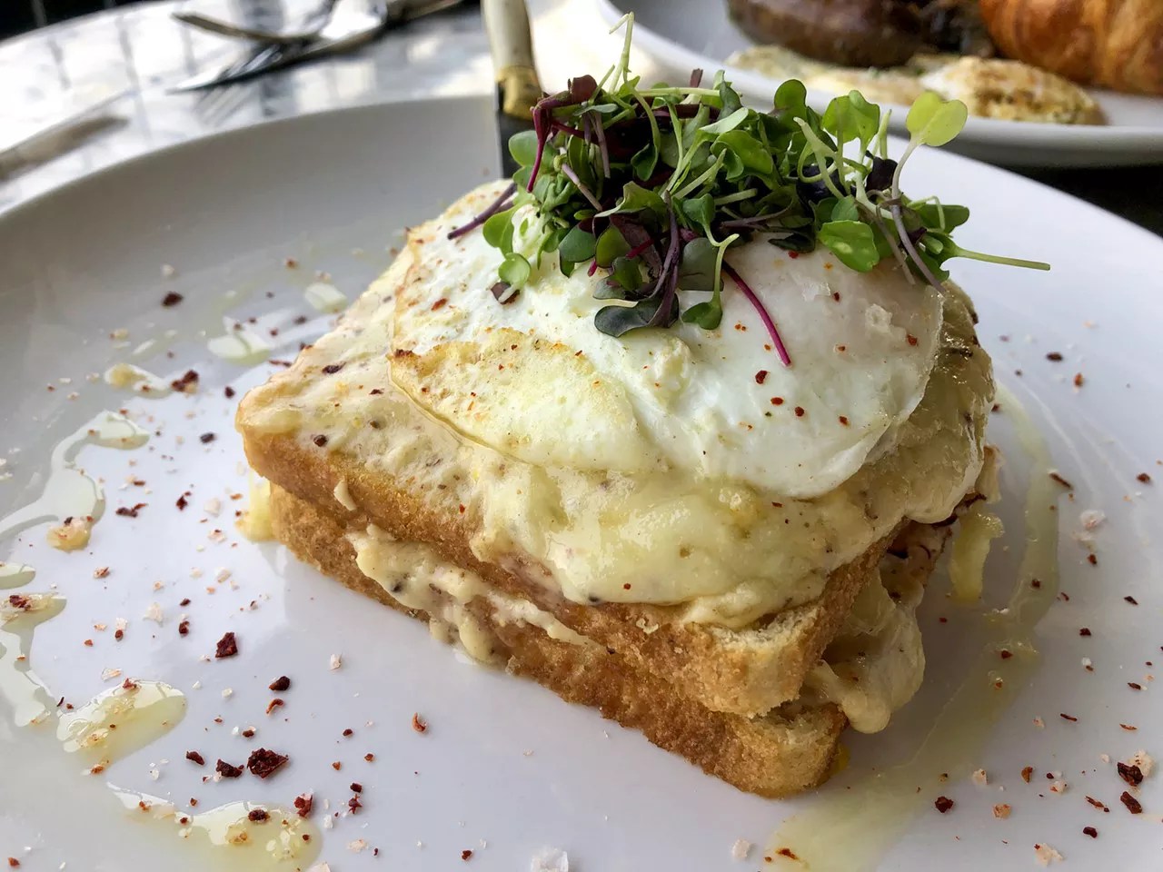 I recommend this place when most people ask for a good brunch spot, and a lot of that is because of this sandwich ($12). It’s a knife-and-fork type of ham-and-cheese sandwich, as it’s topped with an egg and a béchamel-like sauce. You knife crunches through the crisp, cheese-laden toast that offers a swell of flavor and just enough salt throughout. A pile of herbs above it all makes you feel a bit better about the well-earned indulgence.