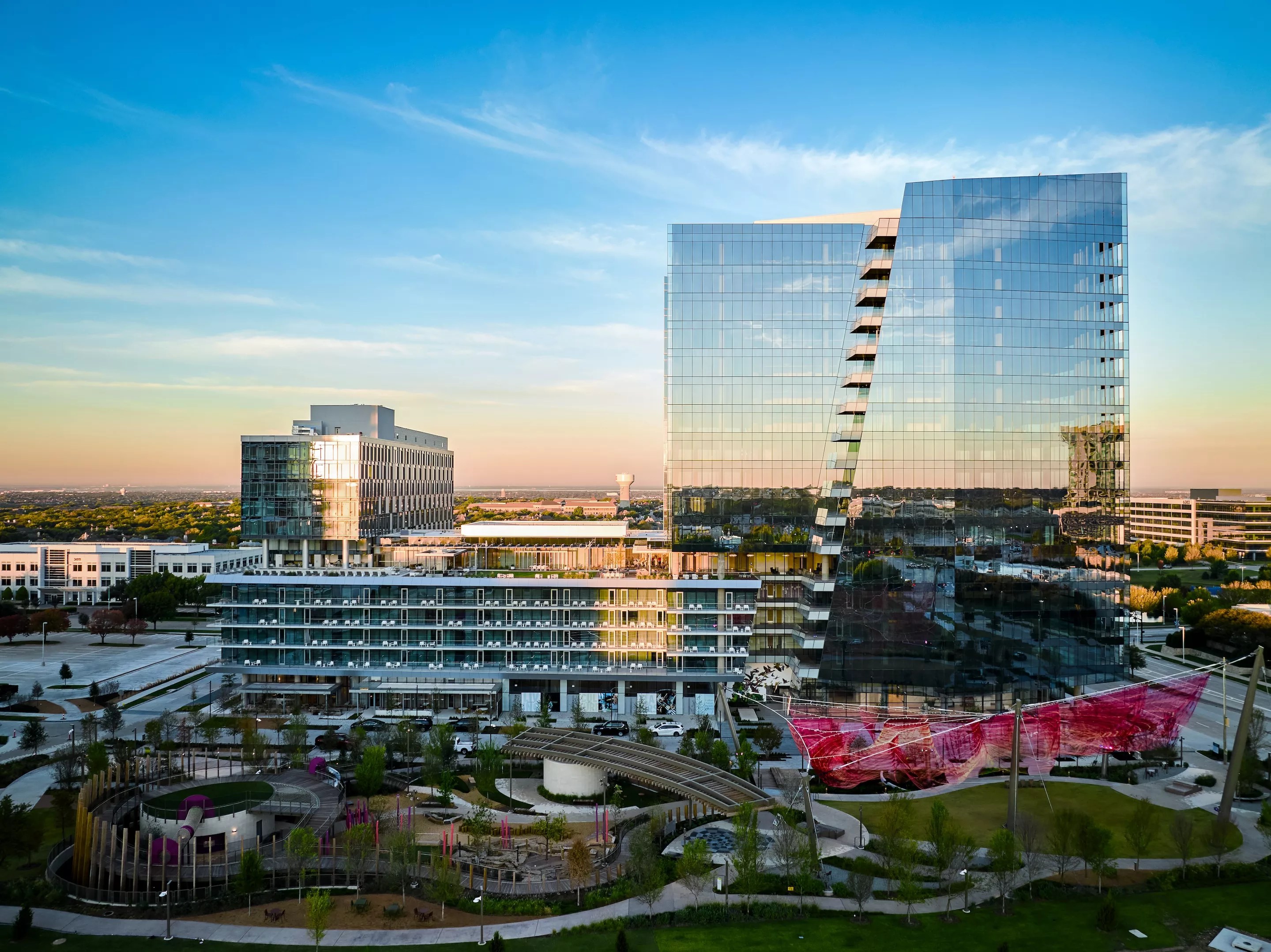 The HALL hotel is part of Marriott’s Autograph Collection and is designed to feel like a boutique space with upscale accommodations, art, and premier amenities. HALL Park Hotel Frisco is near The Star District and has a pool, bar, and rooftop lounge.