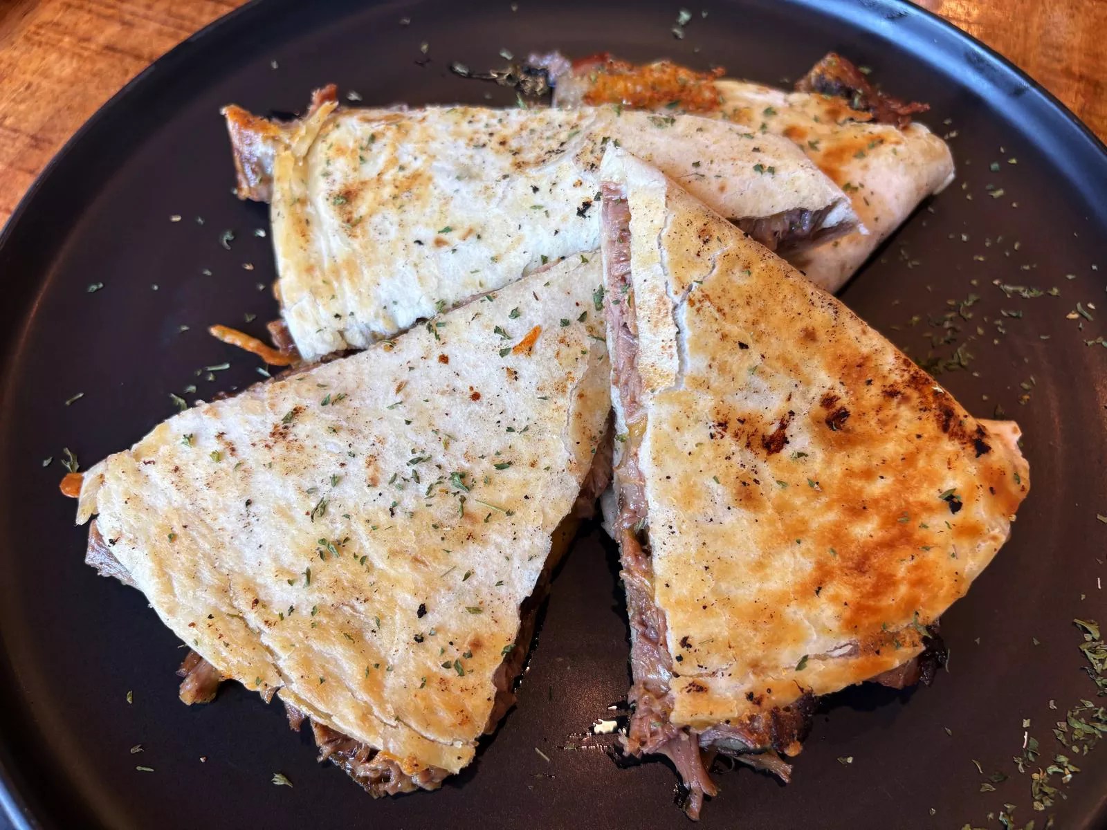The quesadilla at Party of 5 is all brisket glued together with melted cheese. Yum.