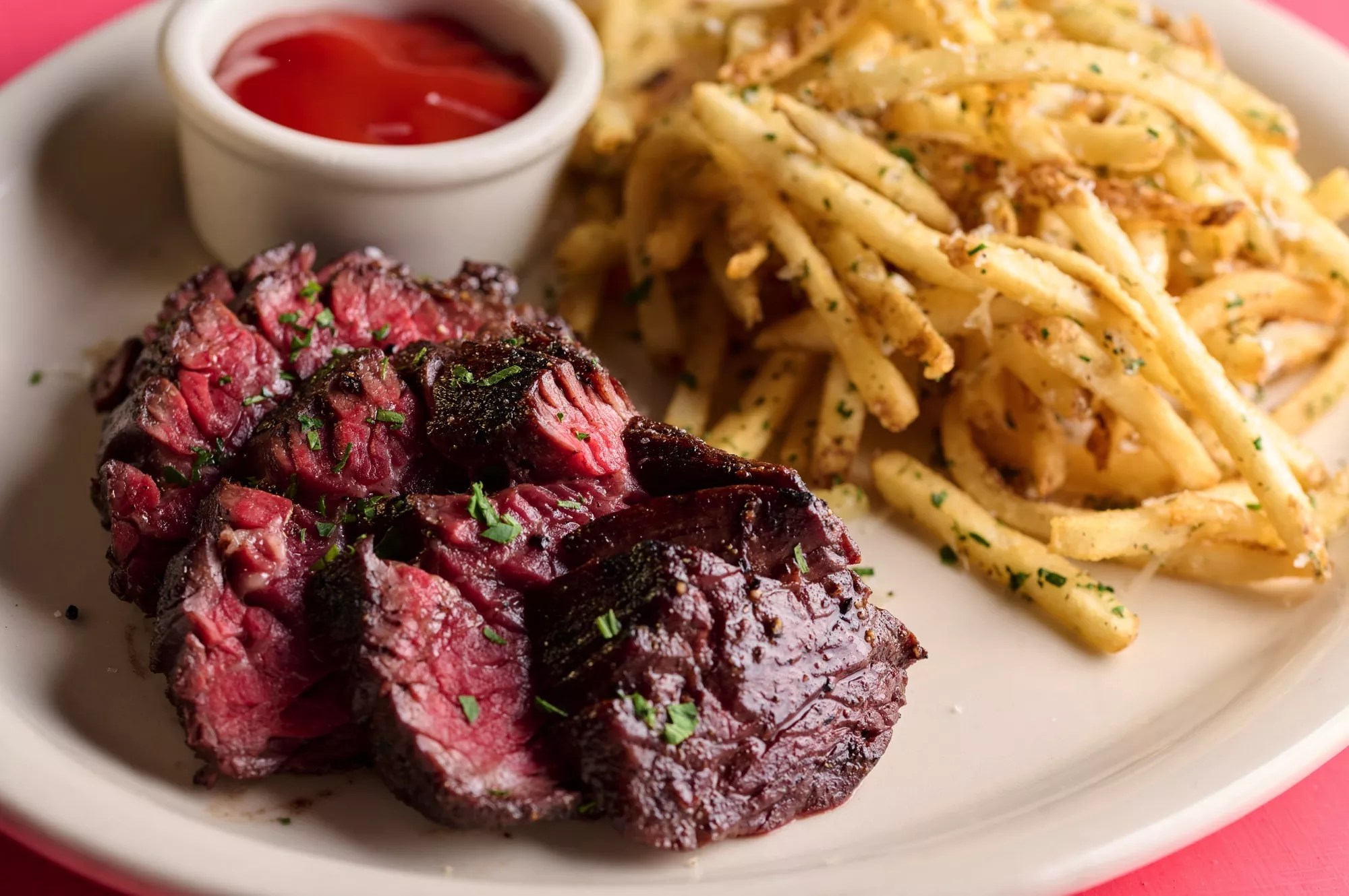 On the food front, Cheapsteaks gets right to the point with a trio of steak cuts on offer. There’s the house sirloin ($16.99), a New York strip ($23.99) or the butcher’s steak ($22.99), which is a hanger steak cut we wish would find its way to more steakhouses. Each comes with a side of truffle Parmesan shoestring fries by default, which isn’t a bad option. On our first visit, my dining partner ordered the strip steak at her preferred medium well (we don’t judge), while I opted for the hanger steak cooked medium. Both steaks were cooked exactly to our preferences, with a beautifully seasoned char on the exterior. The hanger steak in particular was spectacular, a poor man’s filet of tenderness and flavor. It’s still baffling to us that more restaurants don’t offer the cut.