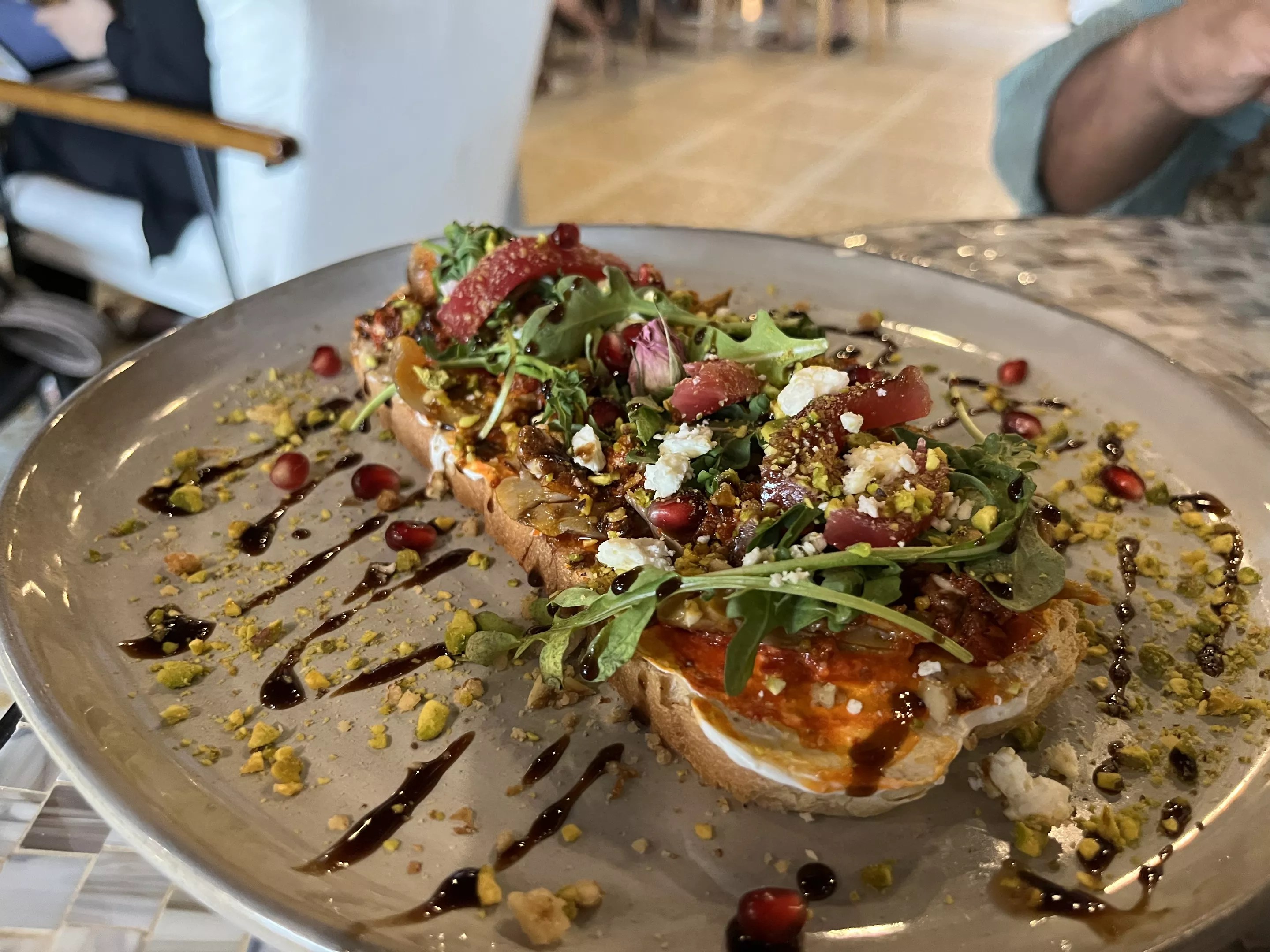 The food and drink options here are as appealing as the decor. Try the signature Syrian Makdus toast, which is smothered in a light ricotta cheese spread and garnished with pomegranate seeds, pickled artichoke and walnuts. An equally popular salami option is adorned with folded salami slices and a pickled olive marinade. Dried flowers and seeds perch on top to add to the colorful spectacle.