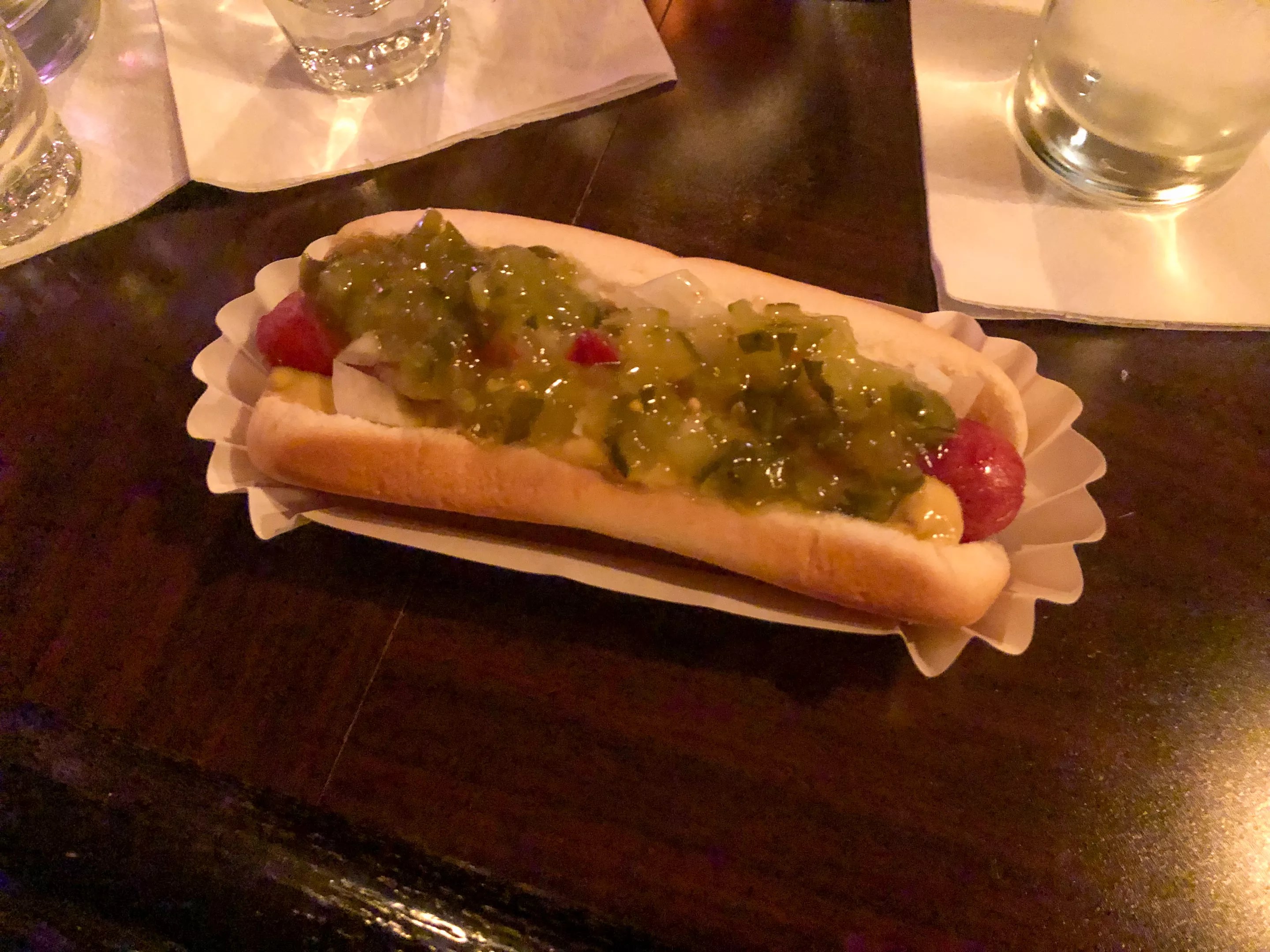 The hot dog is simple. All beef and quality, but simple. But after a drink or two, it’s so perfectly complementing, I’m wondering why every dark bar doesn’t have a hot dog roller sitting on the end of the bar. (Looking at you, Twilite.) The hot dog at Mike Taylor Adams